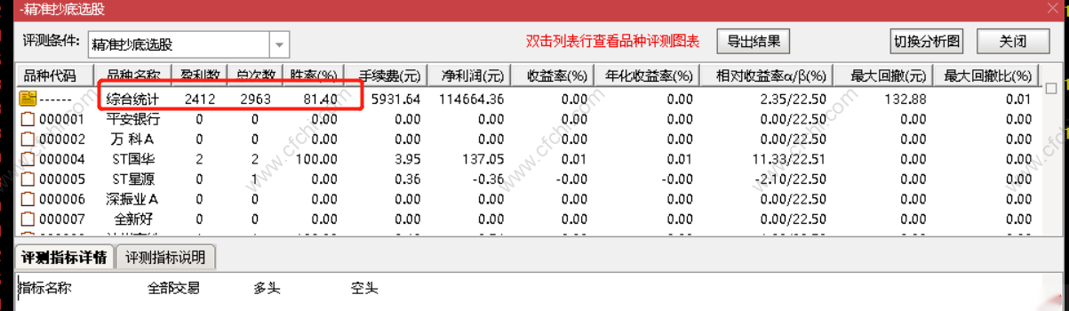 指标三天持股当天冲高止盈,以10个点涨幅止盈,-3个点止损,胜率有80%,抄底就一个字,稳
