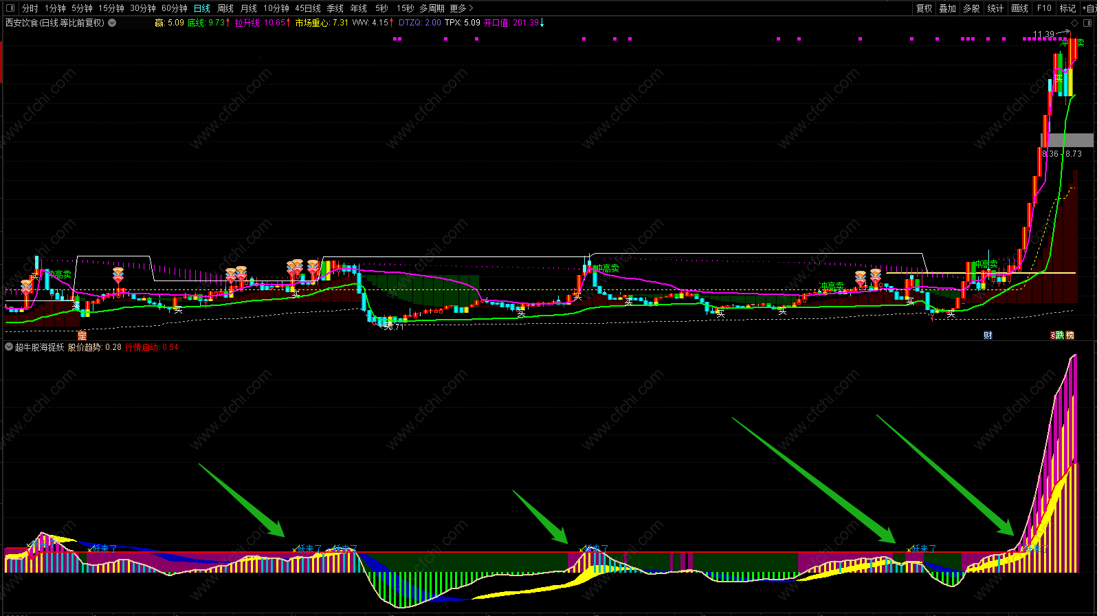 自用双钻王进化版,真正的启动点捉妖师(通达信 副图 源码 无未来 无加密)