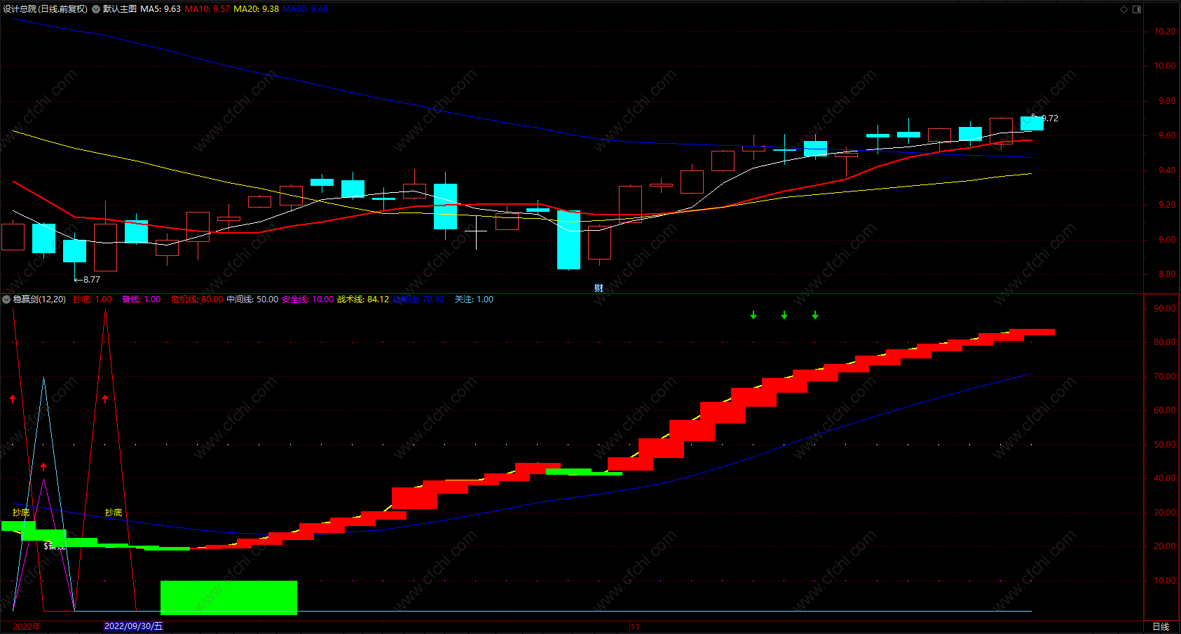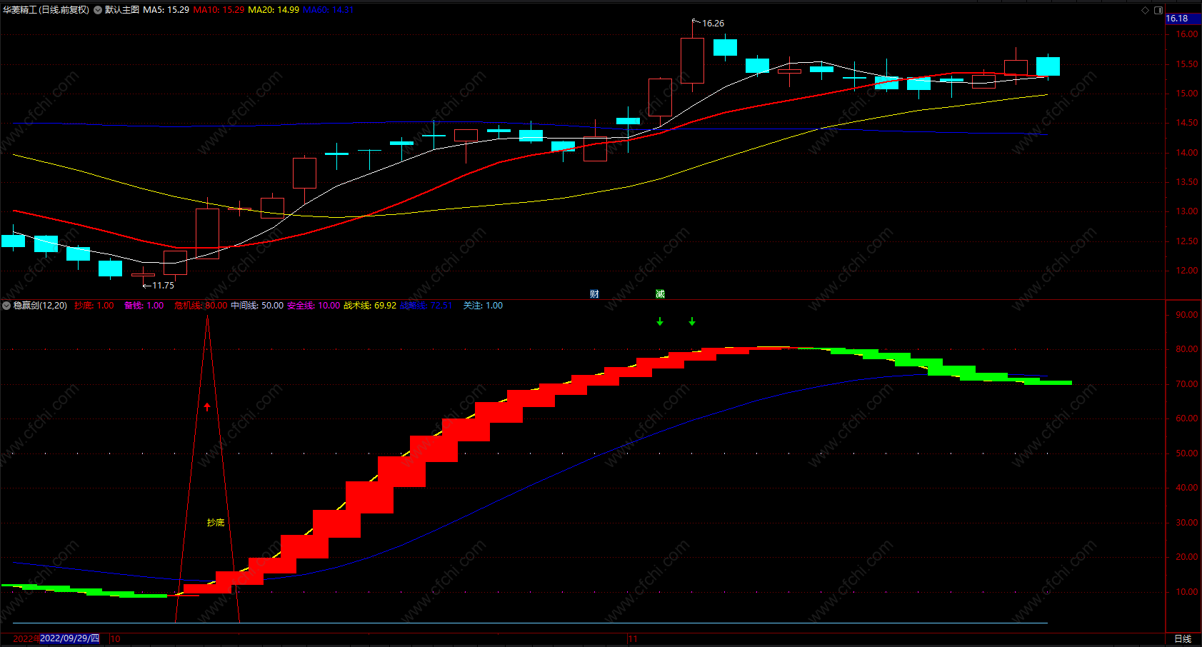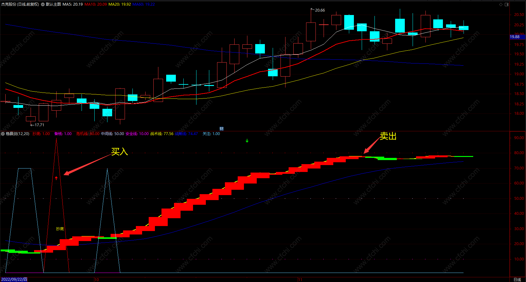 稳赢剑 通达信炒股指标波段抄底黑马 副图 源码