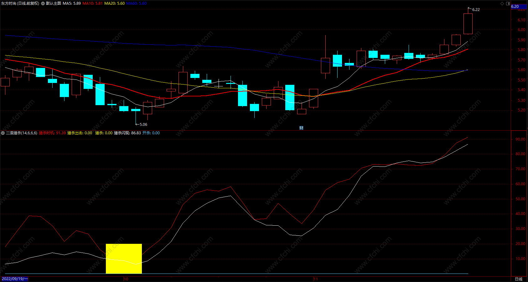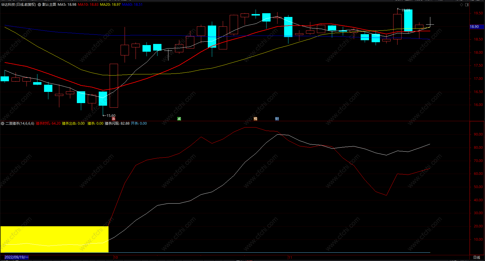 猎杀闪现:MA((((-100))*(HHV(HIGH,34)-CLOSE))/(HHV(HIGH,34)-LLV(LOW,34))+100,5),COLORWHITE;