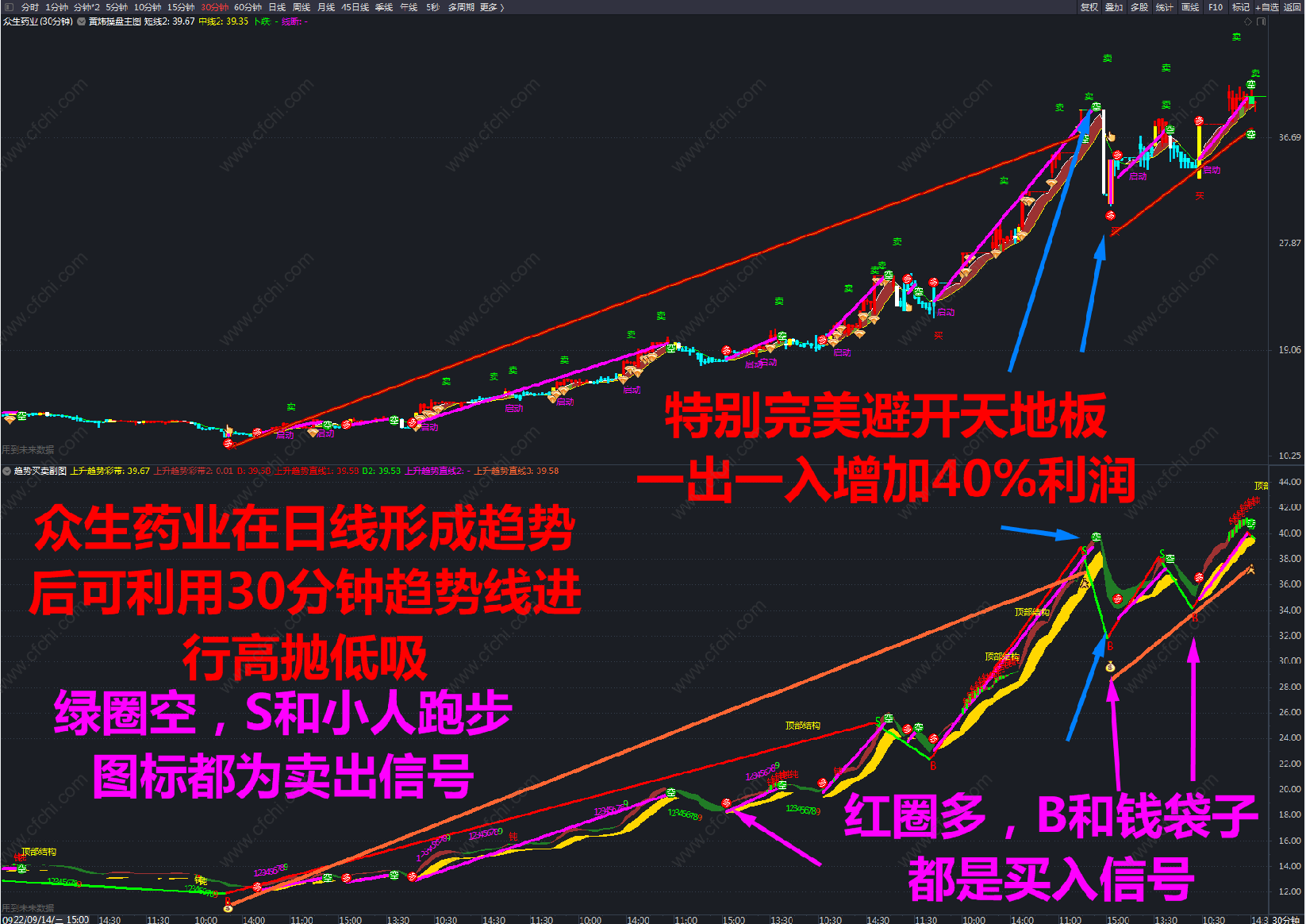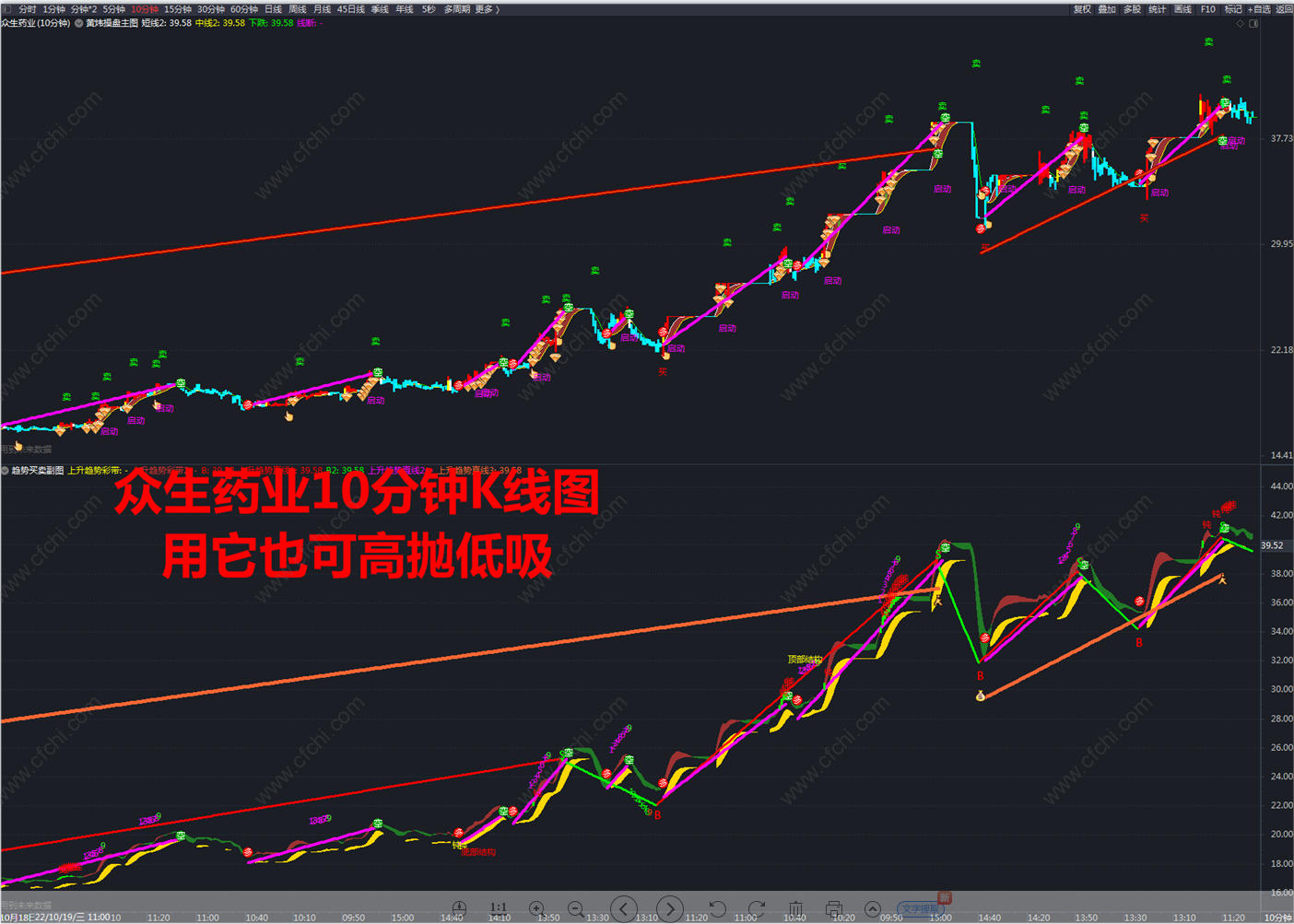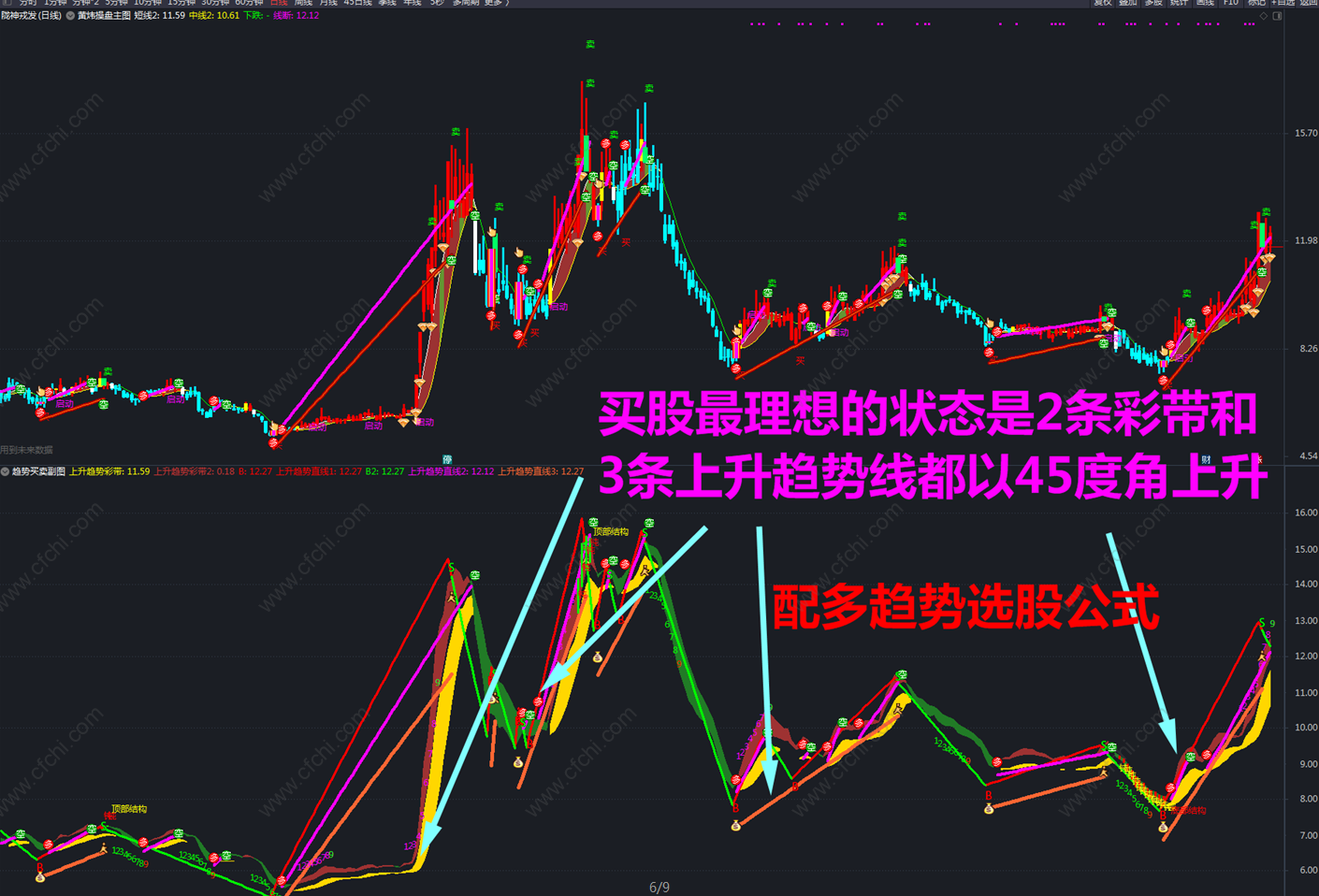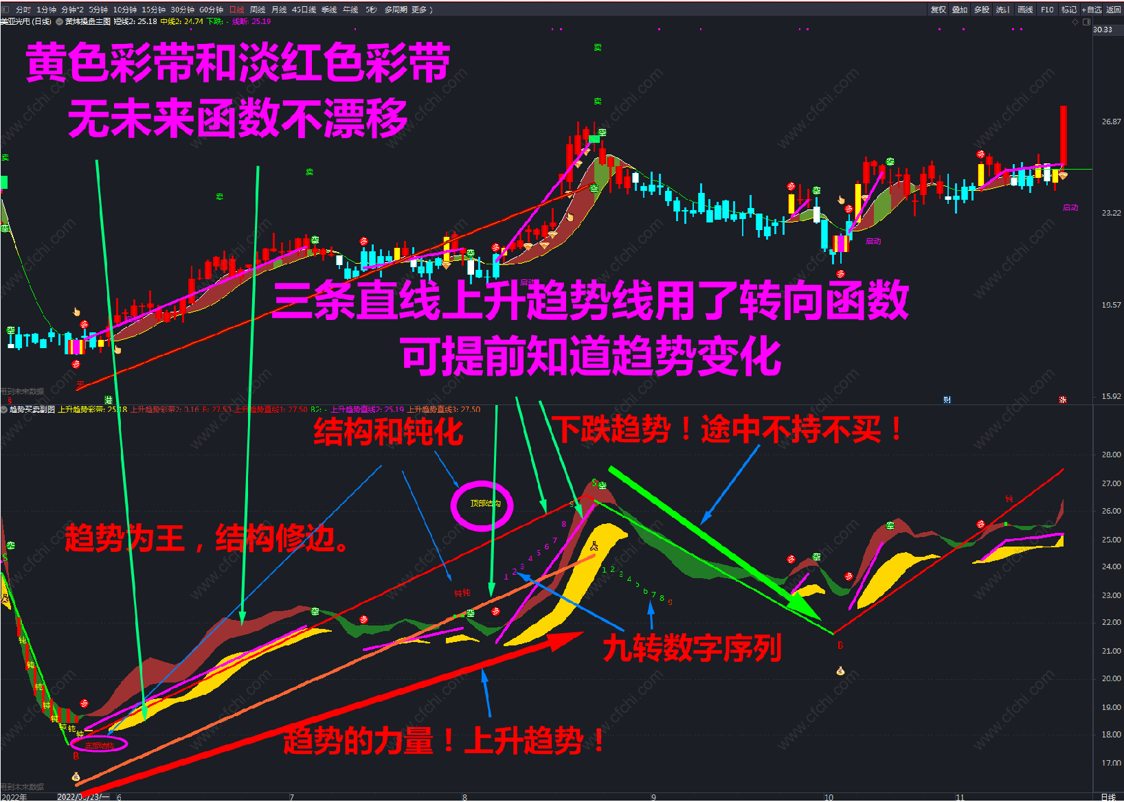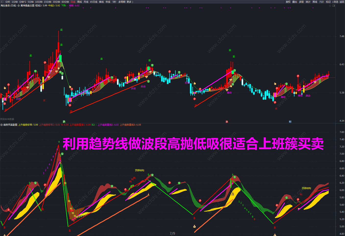 (趋势为王,结构修边。趋势买卖副图,包含九转序列和结构。原创新精品副图指标,配有选股公式。适合上班簇)