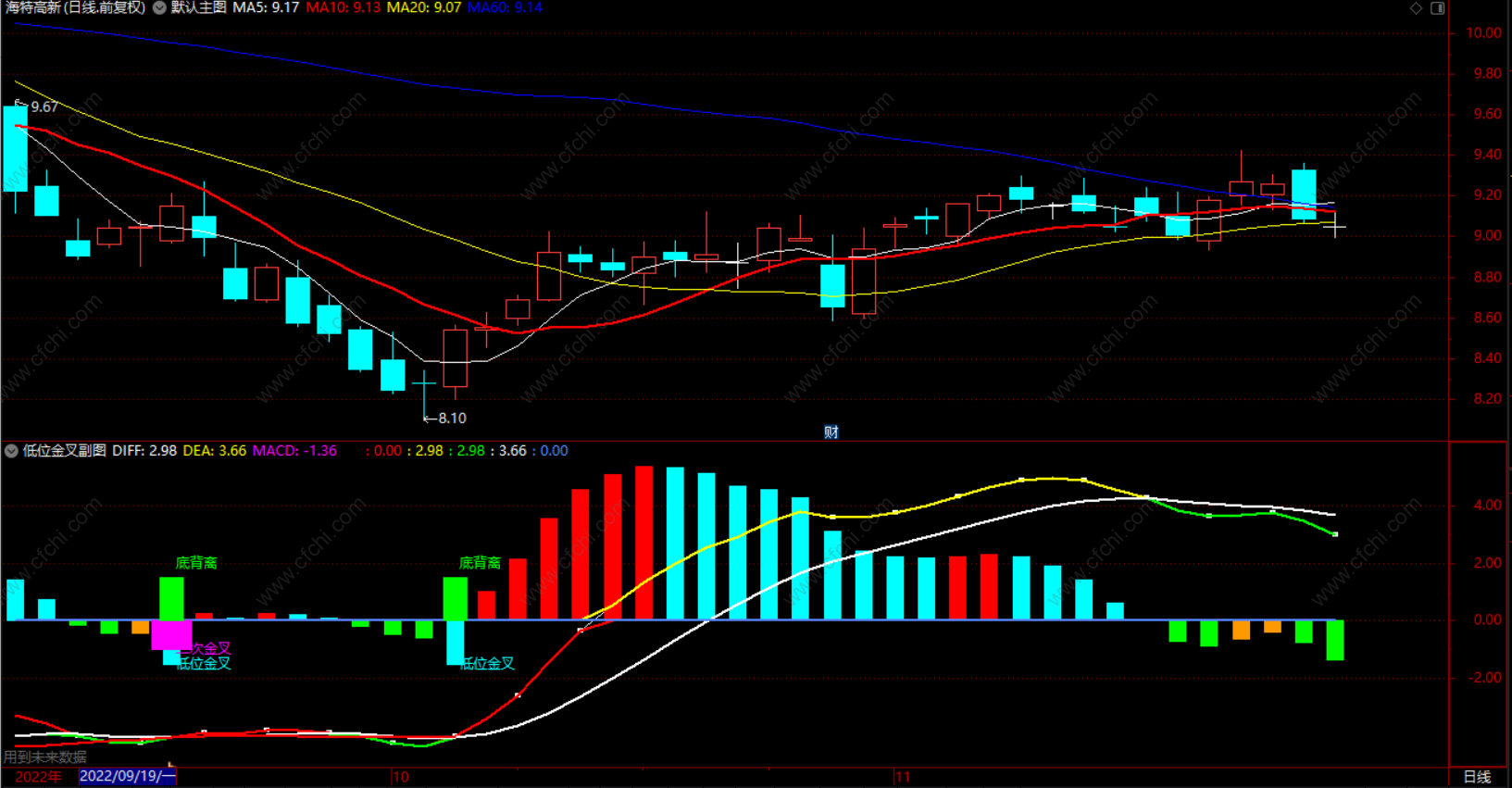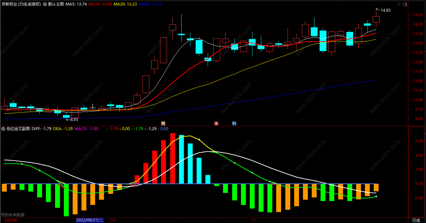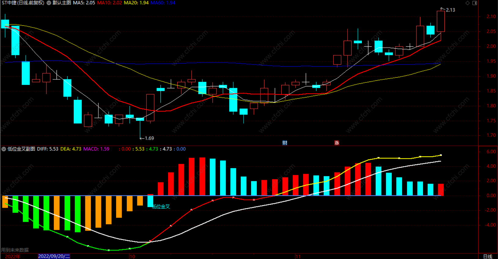 低位金叉:=CROSS(DIFF,DEA) AND DIFF<-0.1;