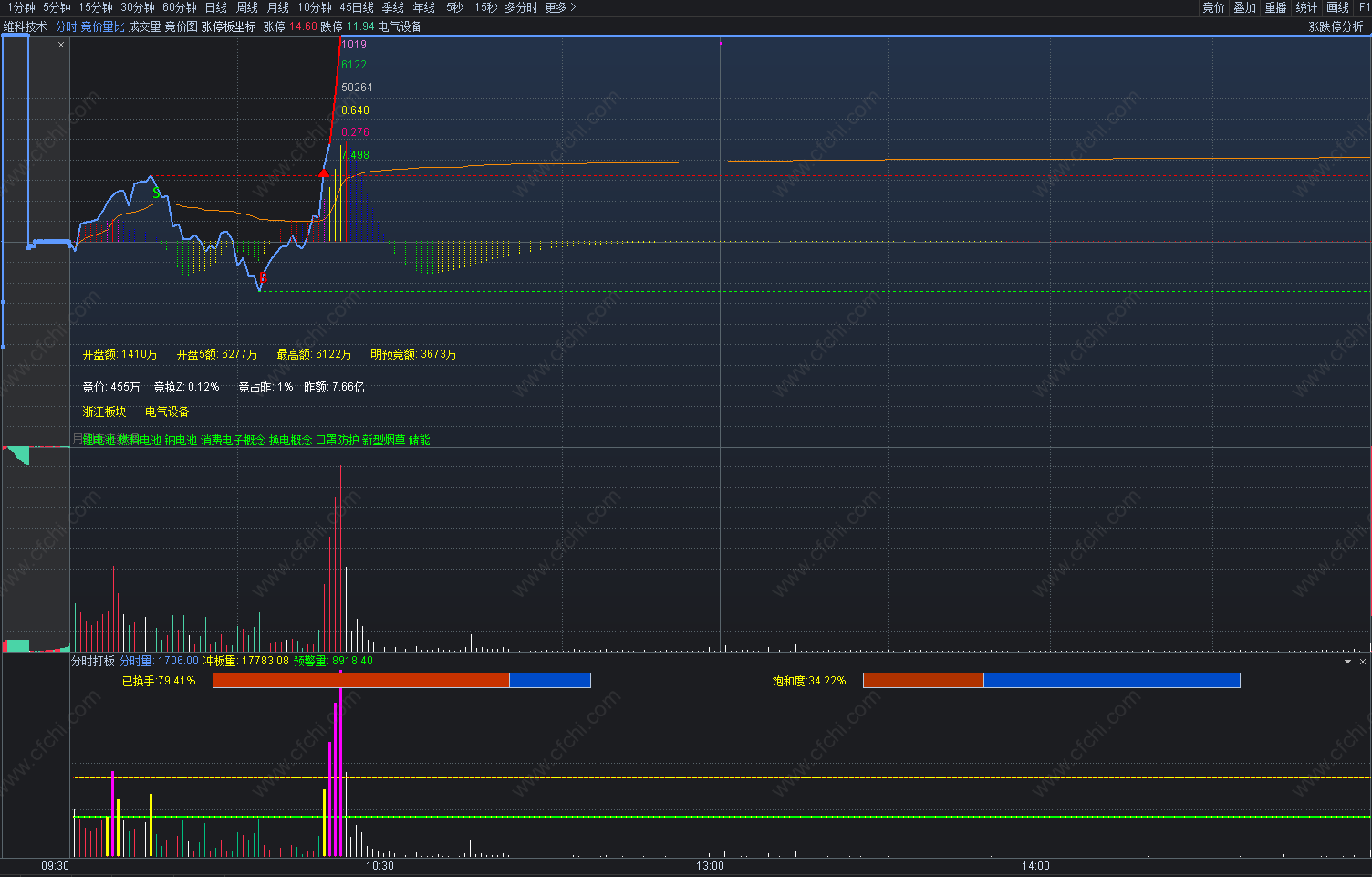 (通达信【分时打板】副图指标,权衡分时量捉涨停板抓妖股,源码分享)