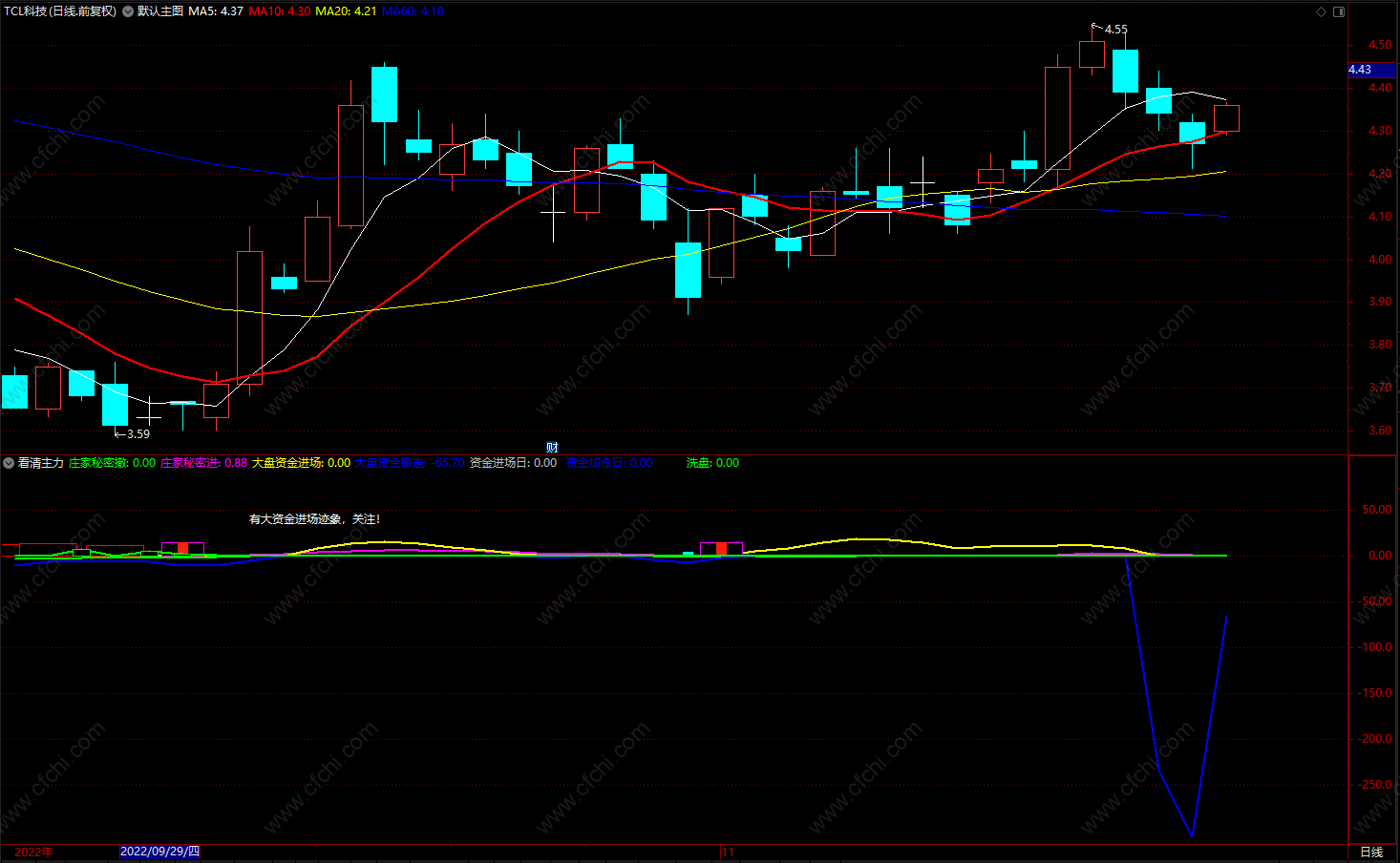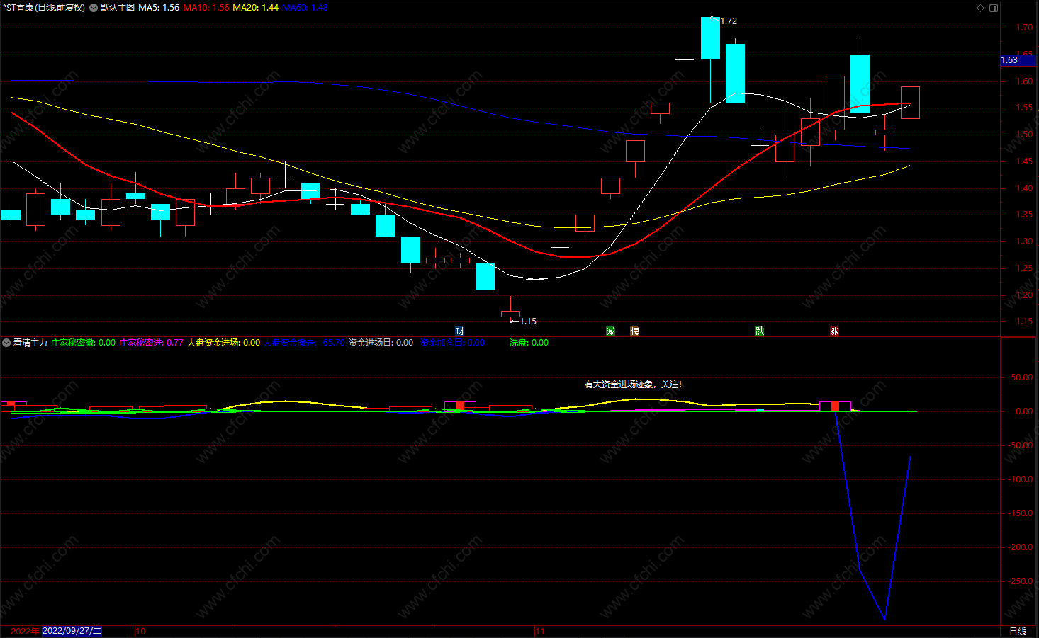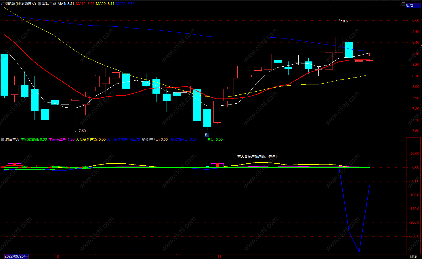 大盘资金提示 通达信看清主力秘密进出 副图 源码