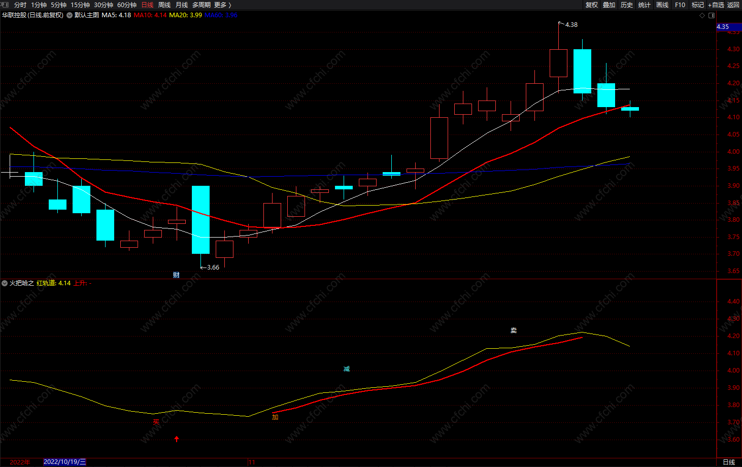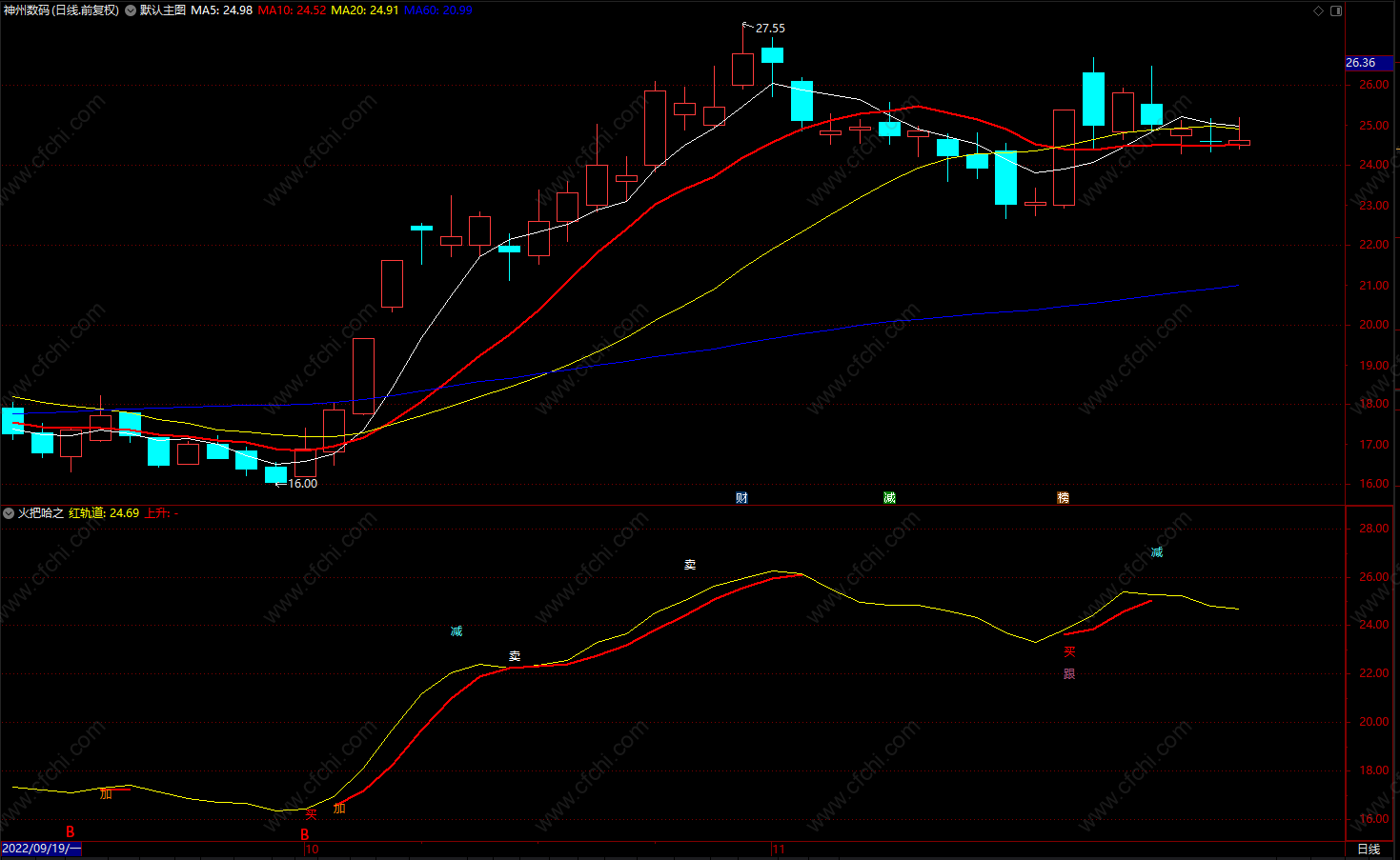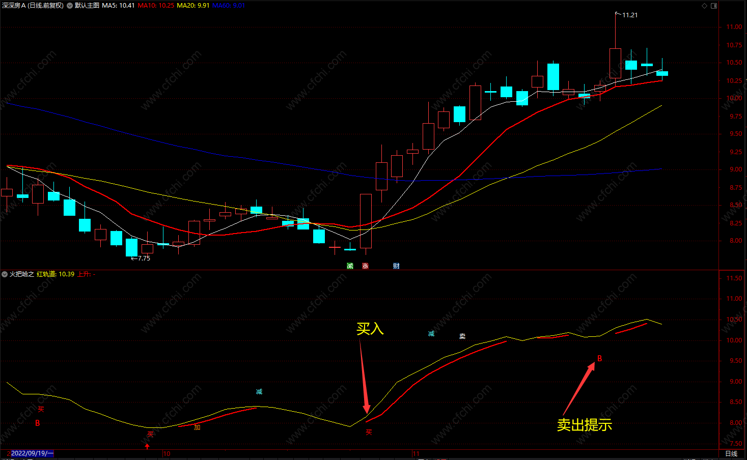 文字提示 “买”入仓时机,“加”追涨时机,“减”注意控仓;“卖”空仓!
