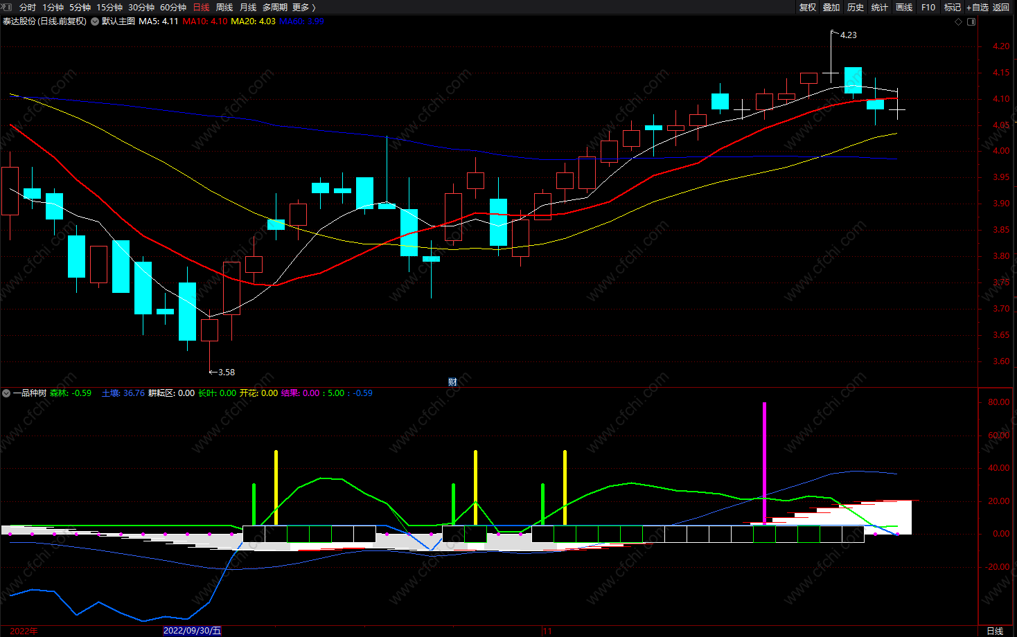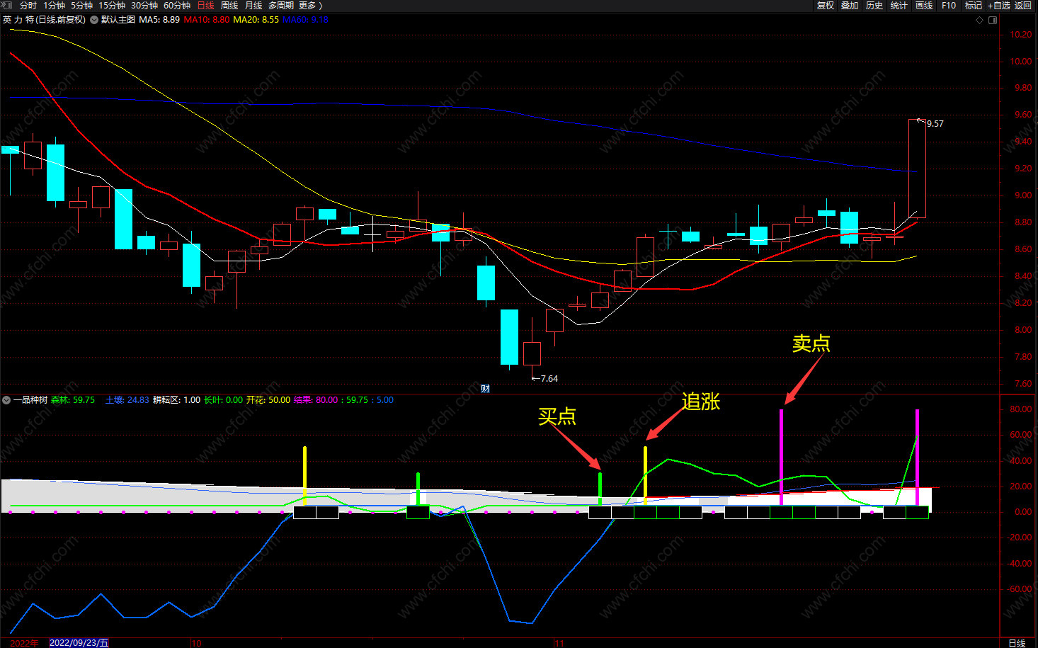 (森林一品种树 通达信耕耘区 买卖提示 源码 副图 无未来)