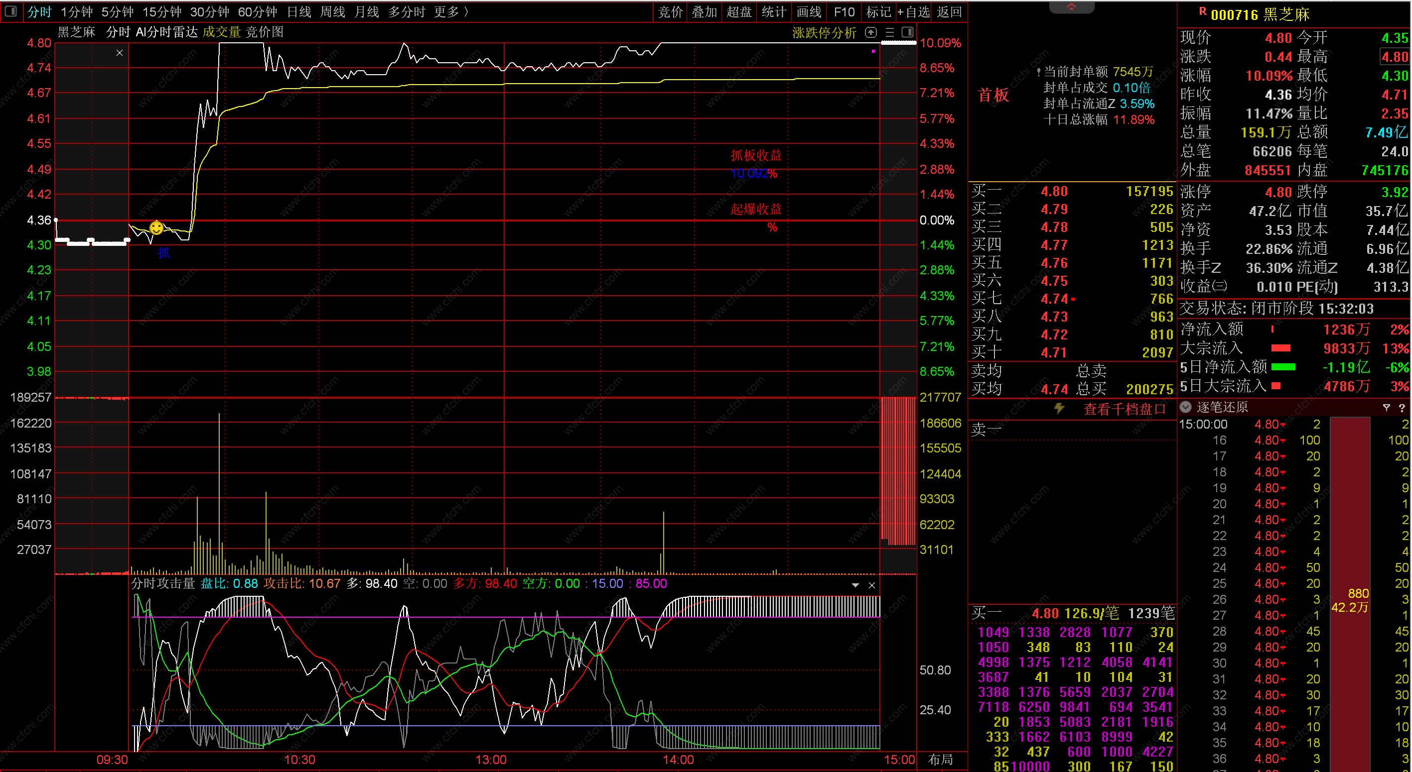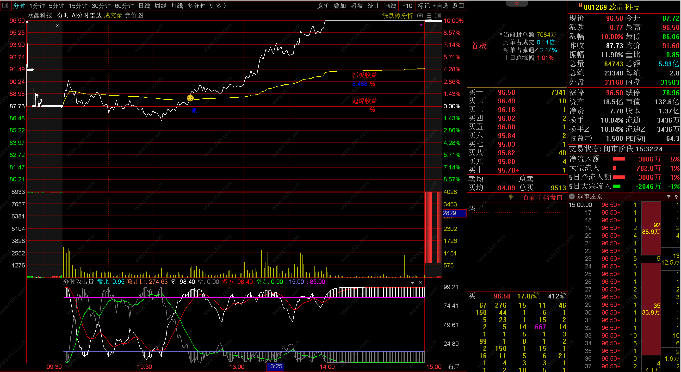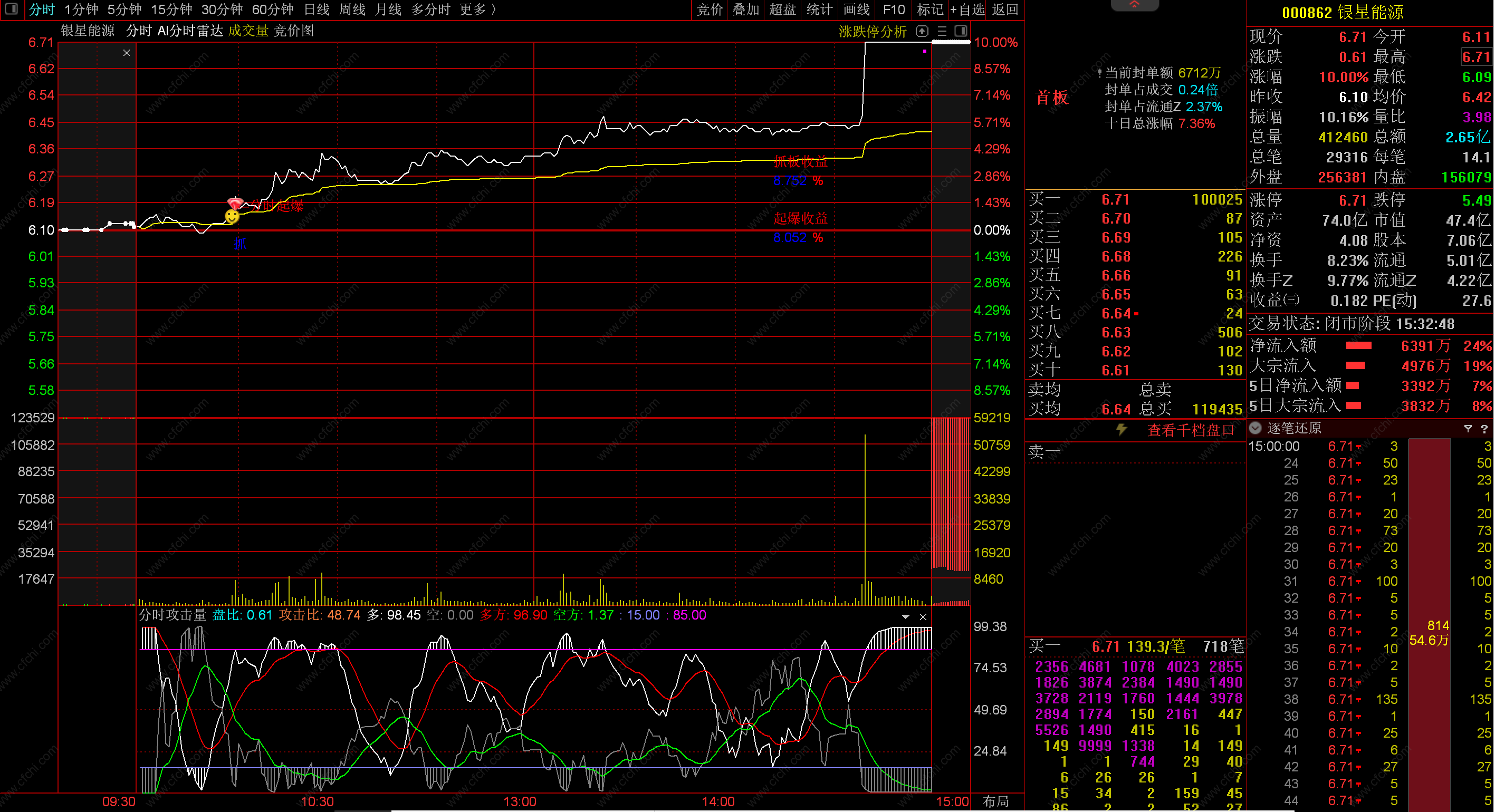 通达信【AI分时雷达】主图公式 分时起爆抓涨停 源码