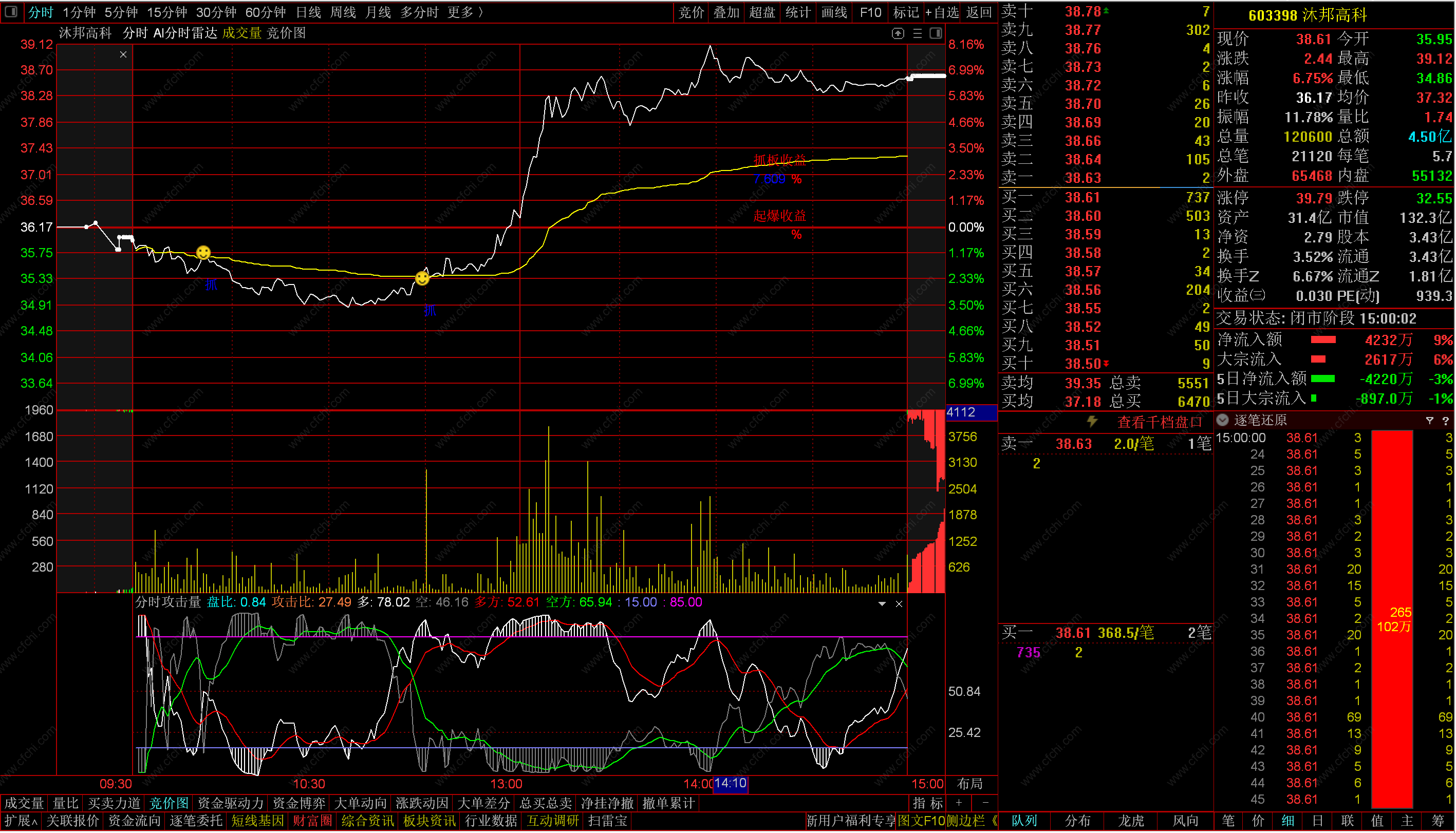 通达信【分时攻击量】幅图公式 多空攻击博弈 抓涨停指标 源码文件分享