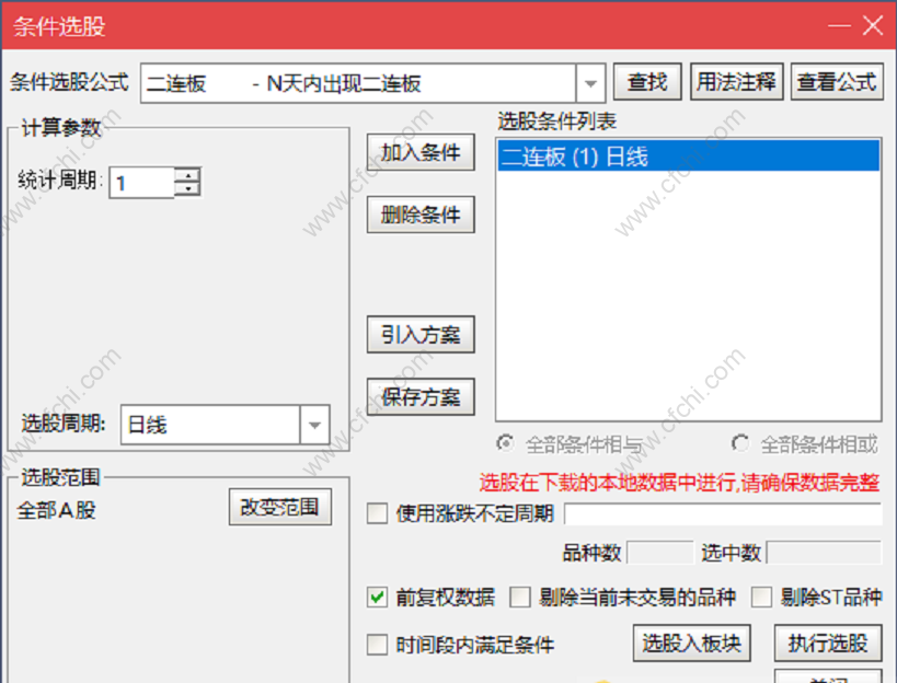 如果把统计周期调到1,选出来的就是当天选板的股票