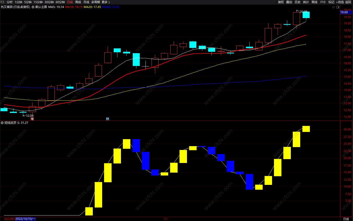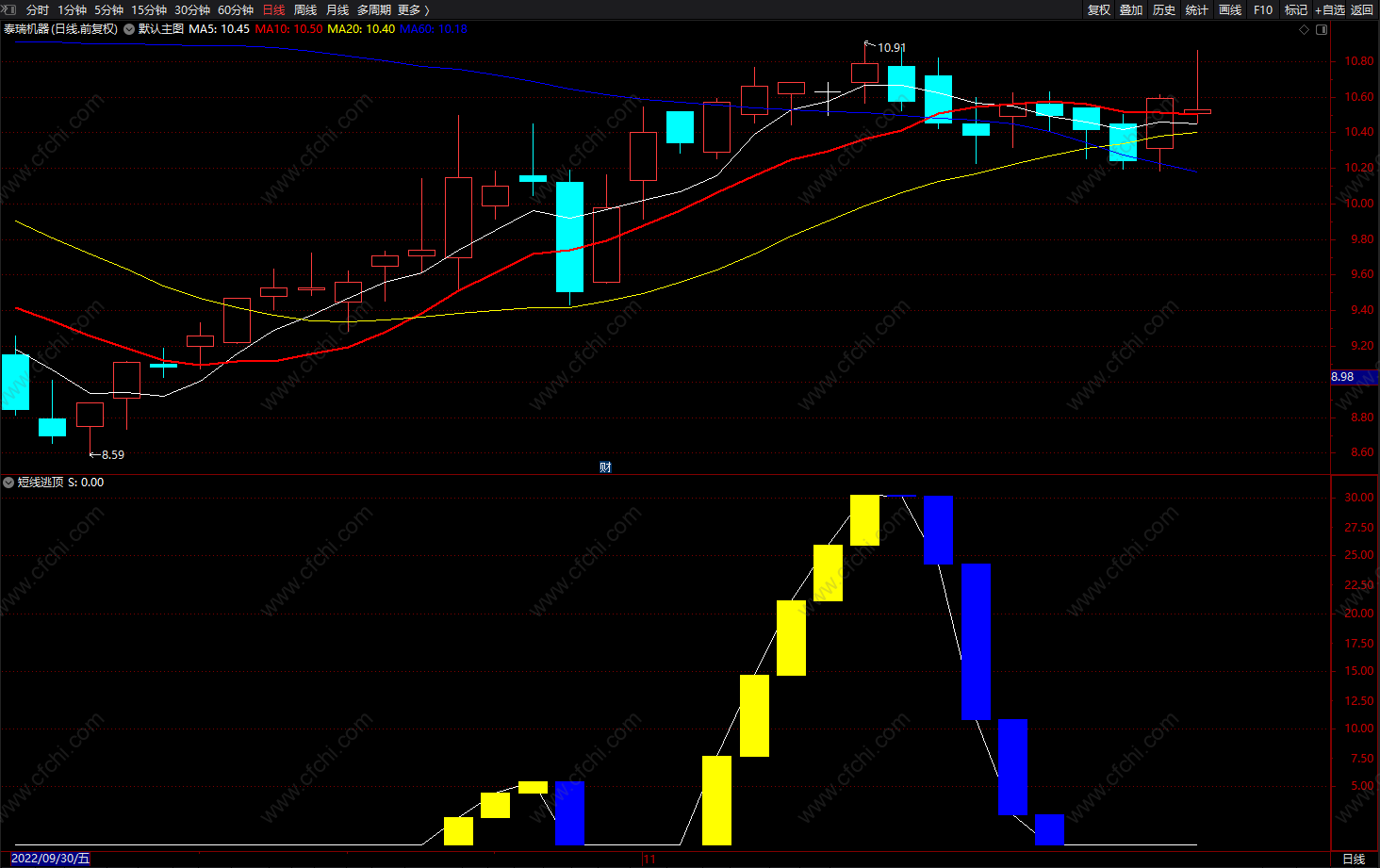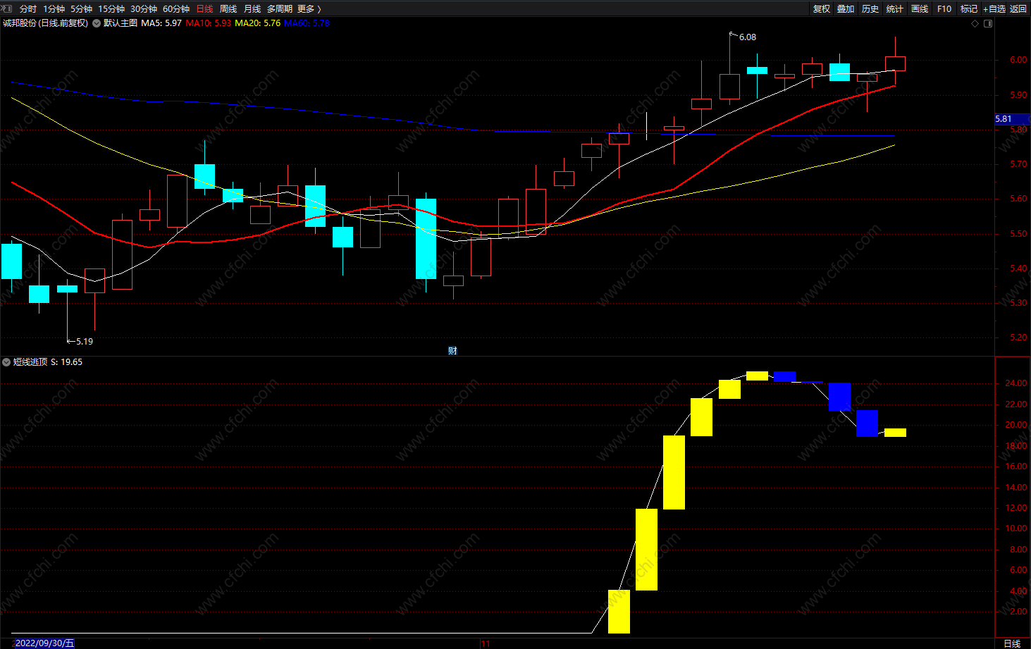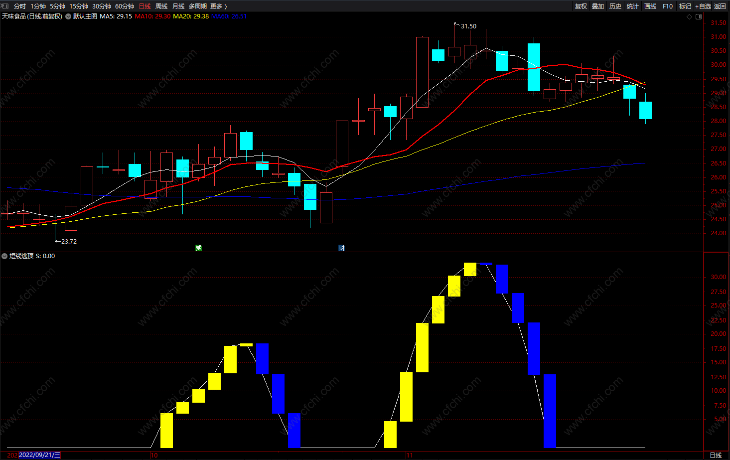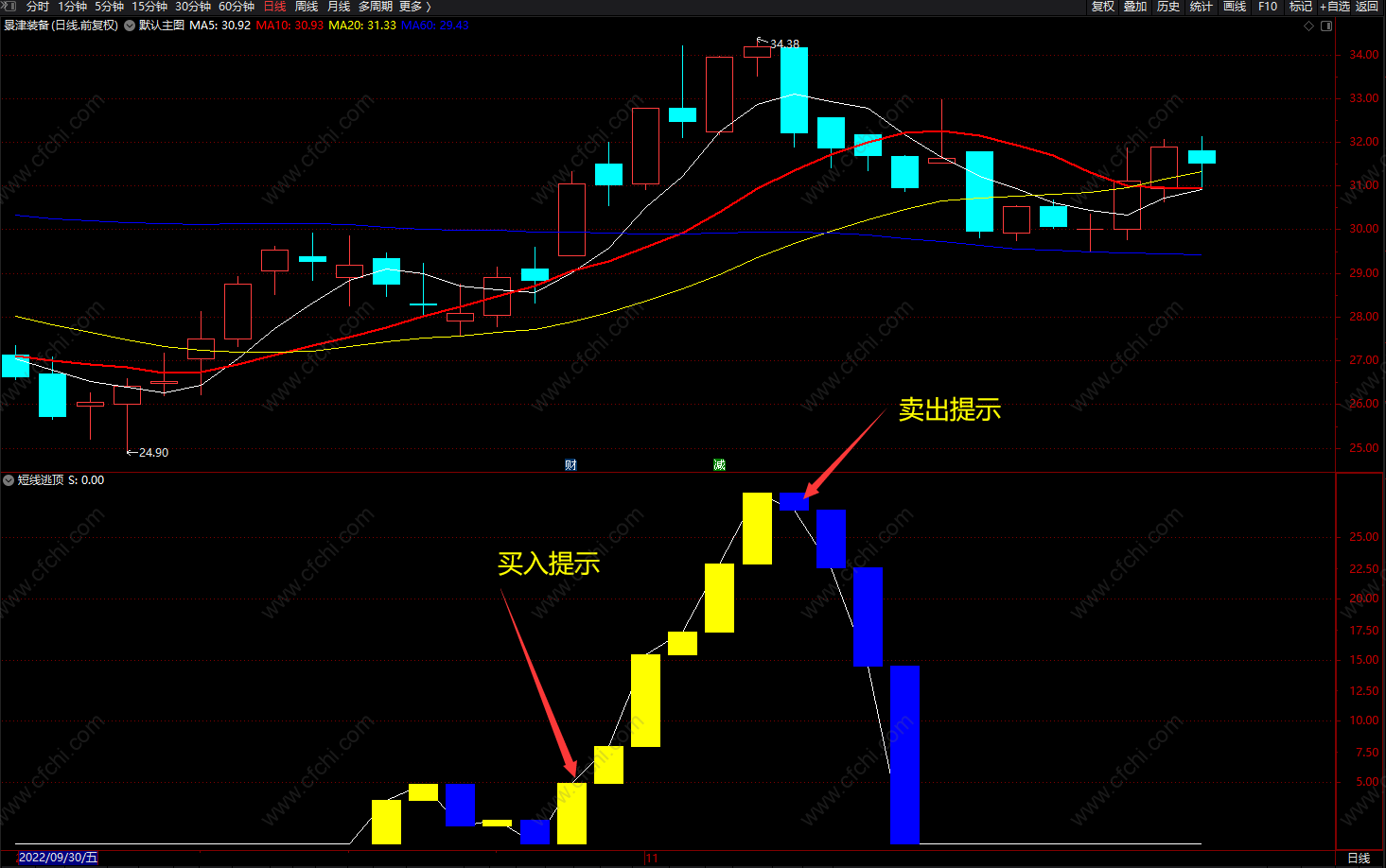 通达信短线逃顶指标 黄柱波段买入 蓝柱看空下跌