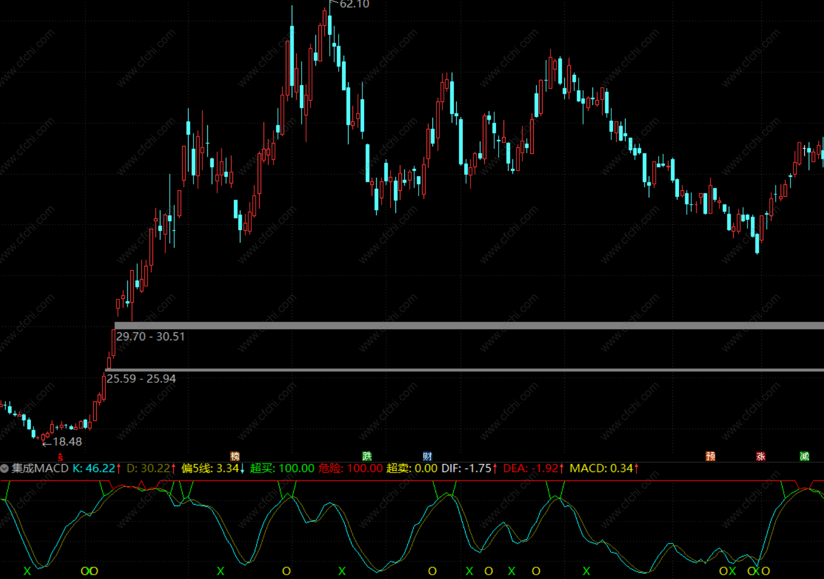 财富池指标公式网(www.cfchi.com)提醒您:指标公式是通过数学逻辑角度编写而来,仅是股票分析环节中的一个辅助工具,对股票选股效率和分析便捷上起到一定的作用,股市是具有不确定性和不可预测性的,请正常对待和使用指标公式!