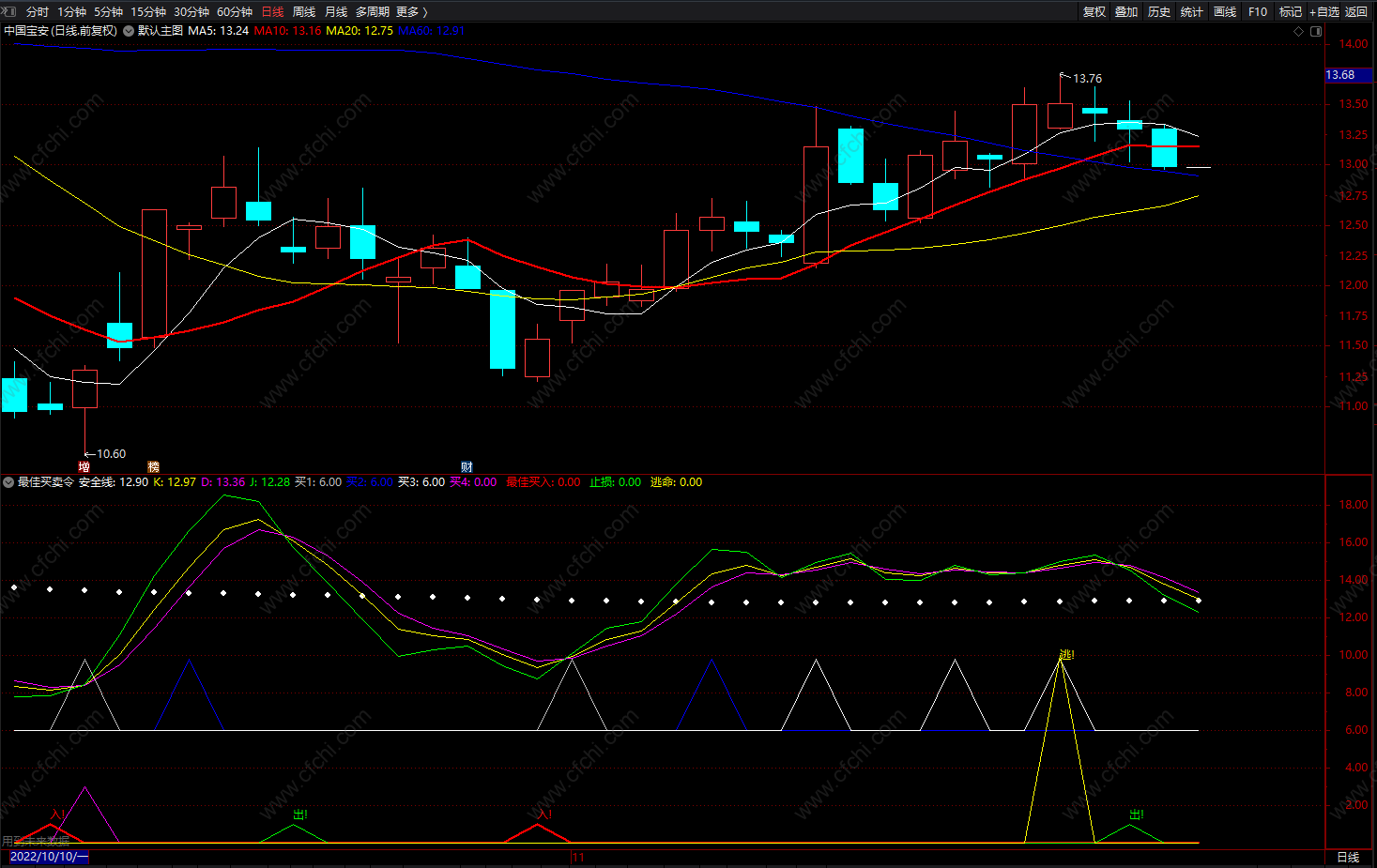 最佳买卖令 通达信安全线上提示买入卖出点指标公式 副图 源码
