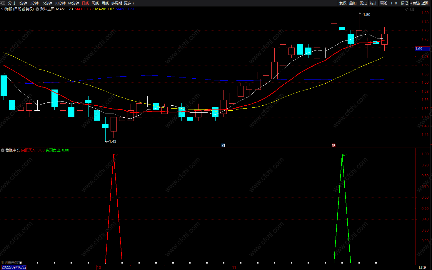 (自用简单好用稳赚中长线买卖提示 通达信 副图 源码)