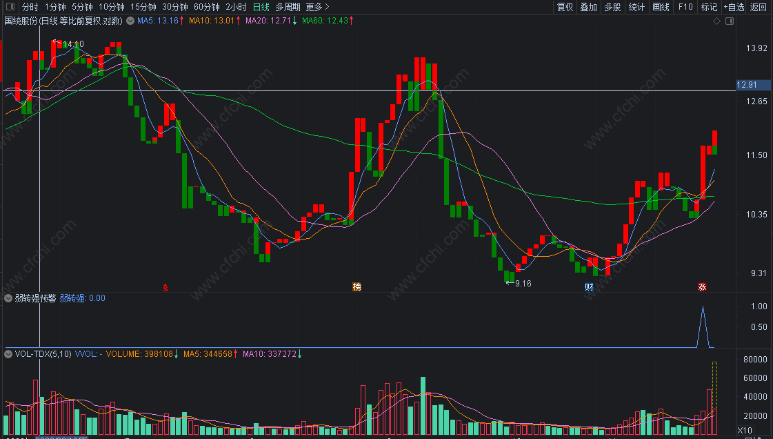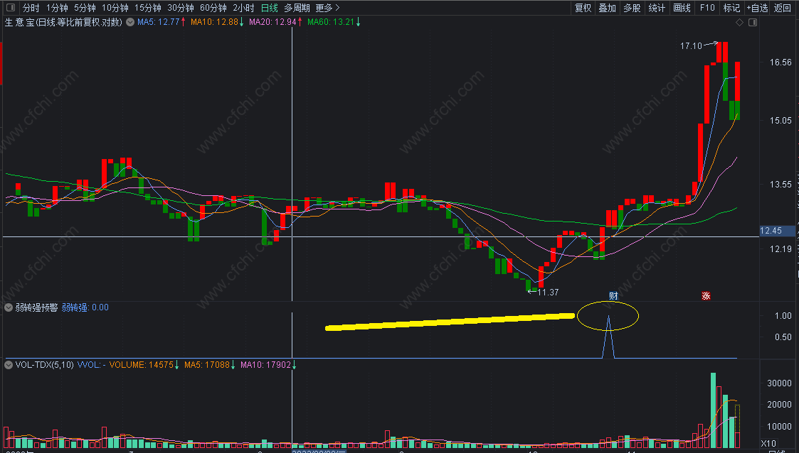 (通达信赚钱弱转强战法副图选股预警指标,找出由弱转强的牛股!源码分享)