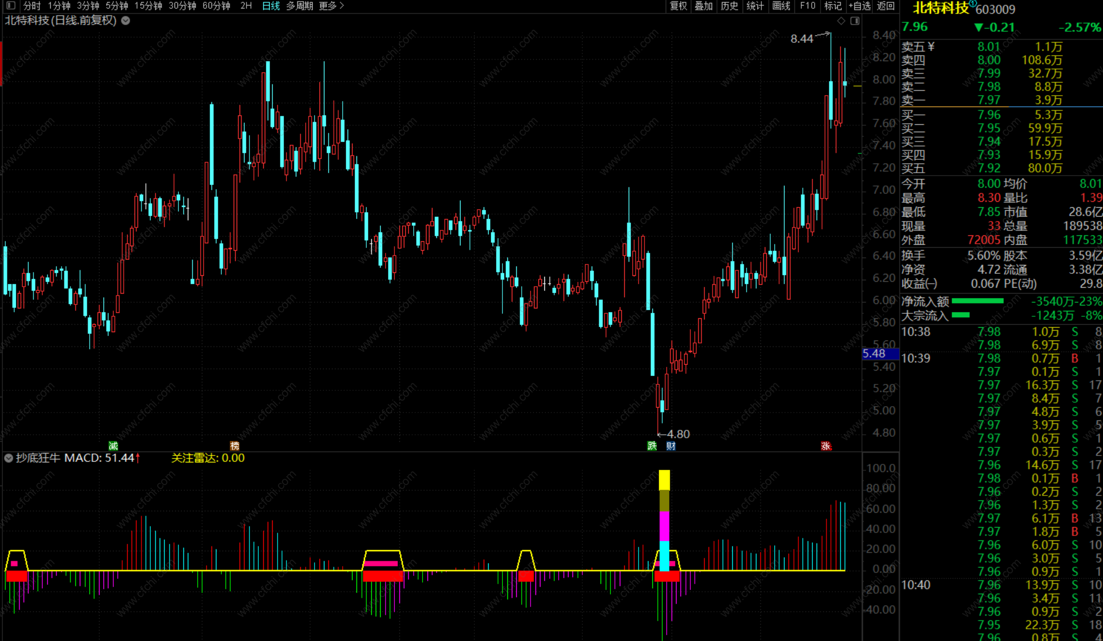 (通达信超底狂牛副图抄底信号 精准通达信副图 无未来 不加密)