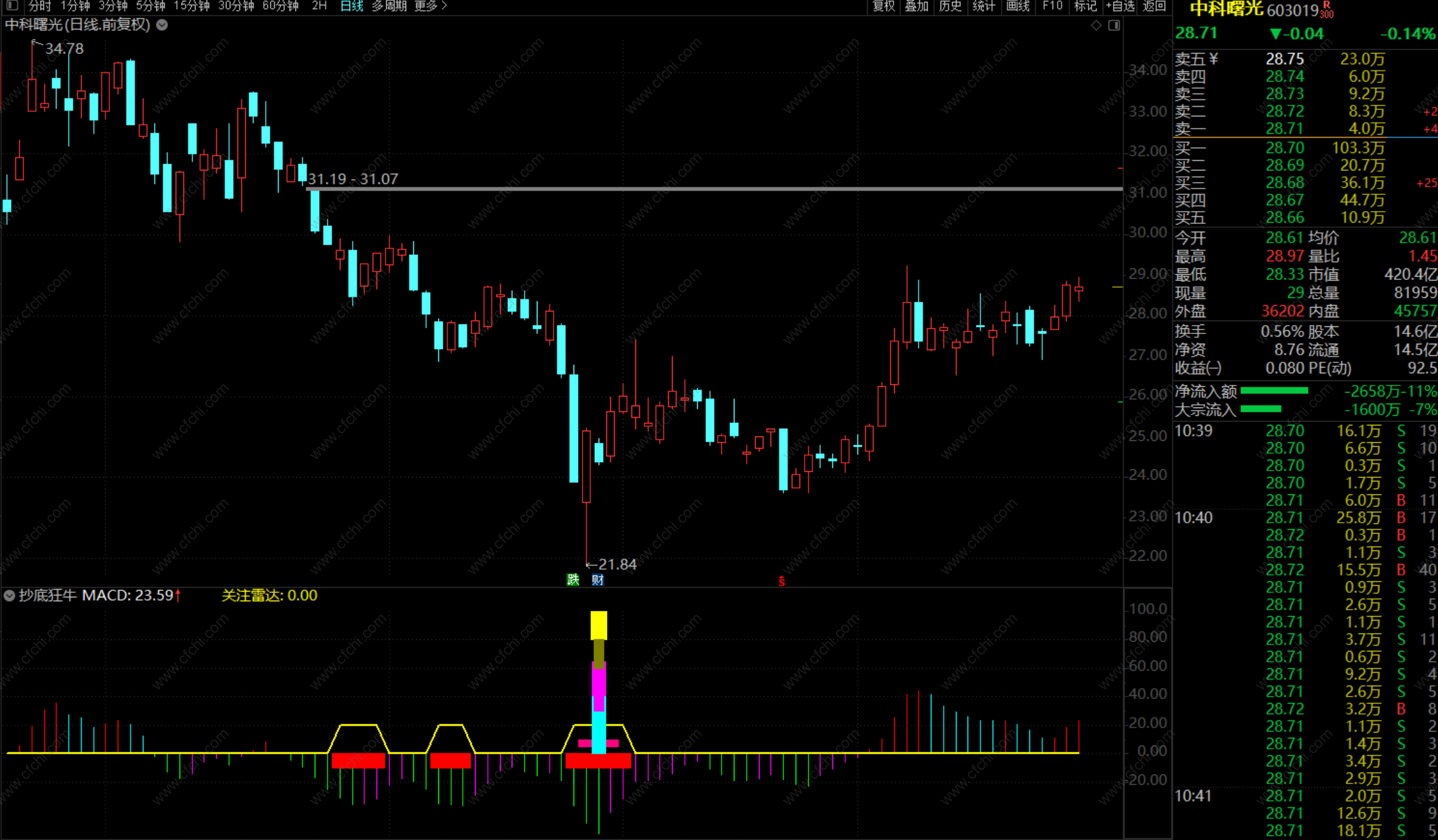 指标抄底信号相对准确,无未来,不会漂移,做短线的用户可以参考,美中不足的是没有选股指标,懂编写的可以自行研究。