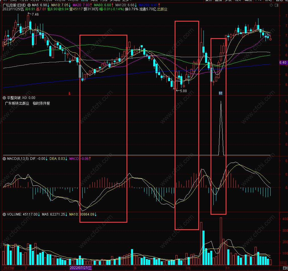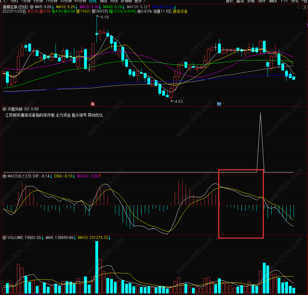 3、突然放量这样的信号是强有力的中短线指标信号,结合了MACD量能进去变化情况。以红柱量能代表进的资金多,很少出现绿柱,突破时说明大资金仍在里面。这样方便我们判断。