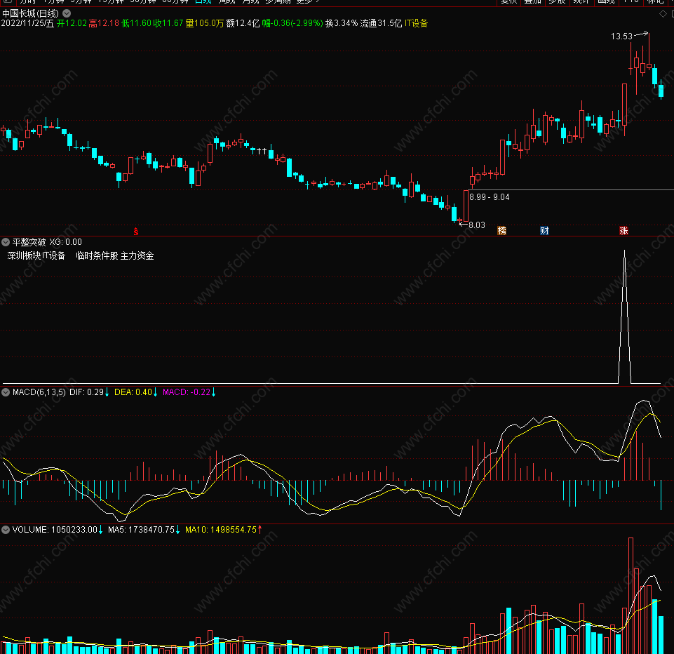 3、平整突破指标用法分享:短线结合MACD指标进行操作,中长线注意仓位影响。