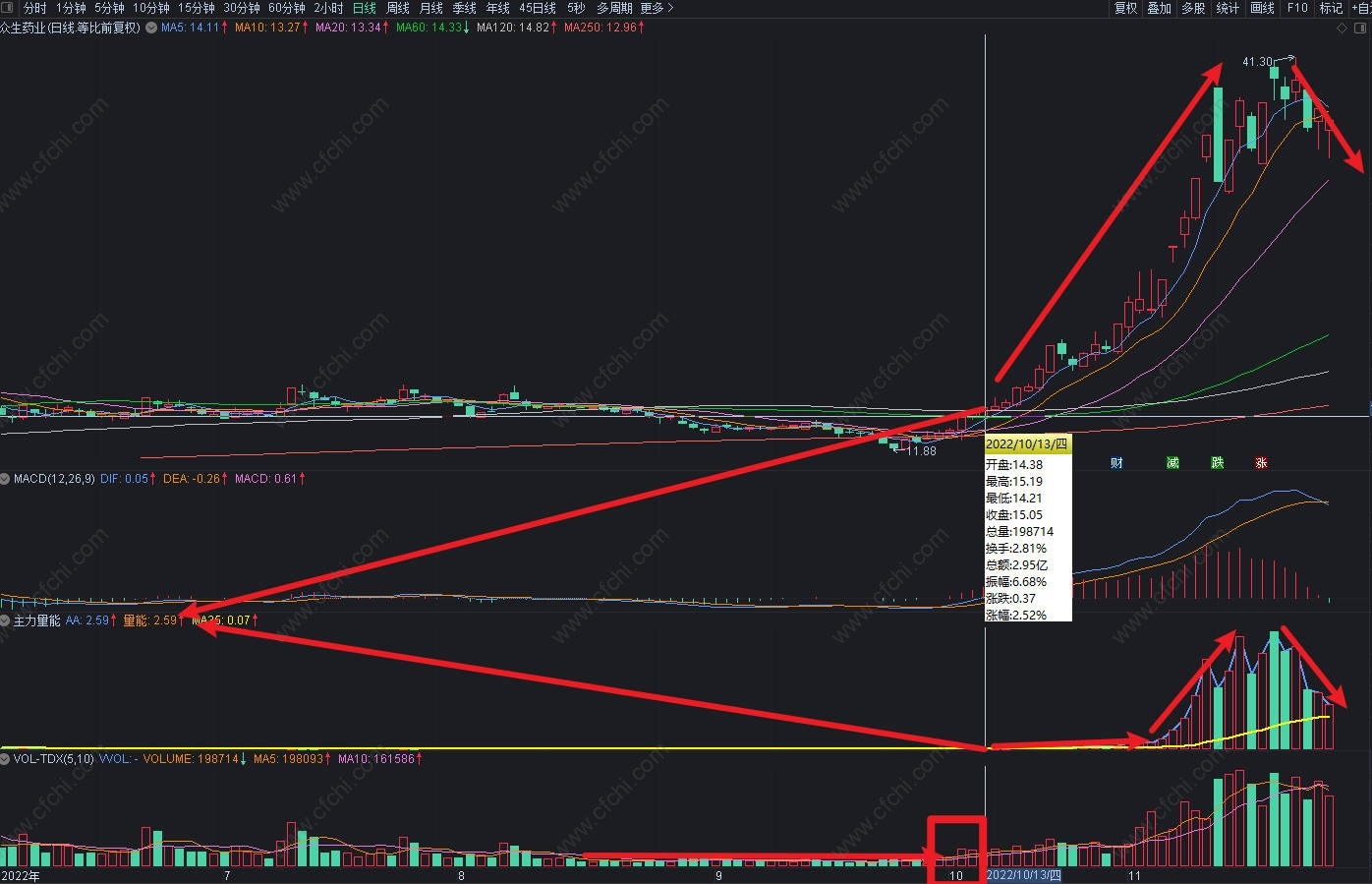 主力不参与的时候,量能值为0,大资金参与进来,有相应的量能值,并且是一段可持续性的。对买卖决策有一定的帮助。