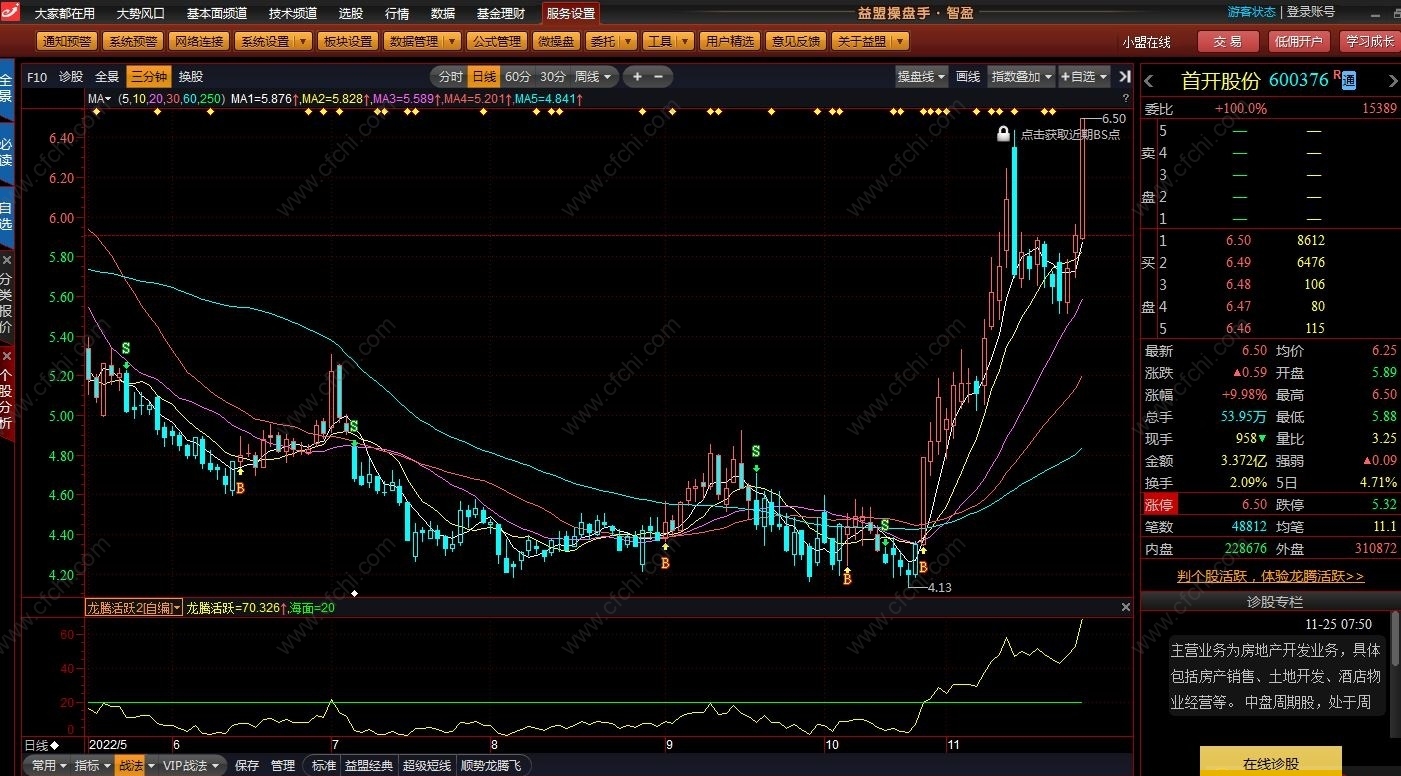 (【益盟】龙腾活跃副图指标通达信版,股价上穿海面,犹如姣龙出海,一跃飞龙上天!源码分享)