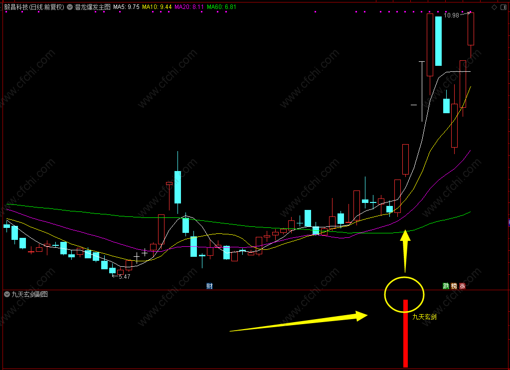 (通达信【九天玄剑】副图选股指标,强者恒强理念 只选确定主升趋势的标的,今买明卖源码分享!)