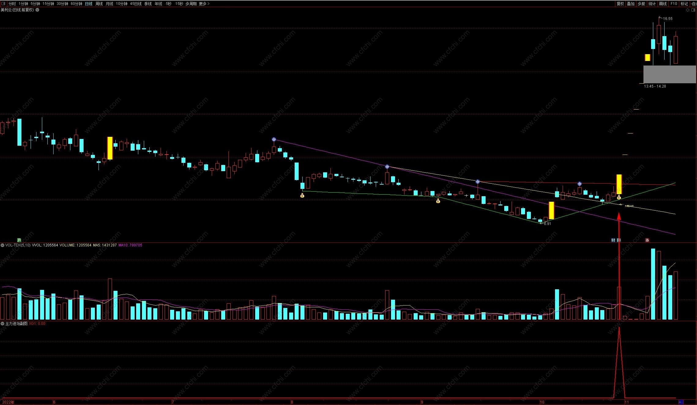 精华版:分时主力吸筹:增加了买入点提示,效果不错。手机电脑都可用。