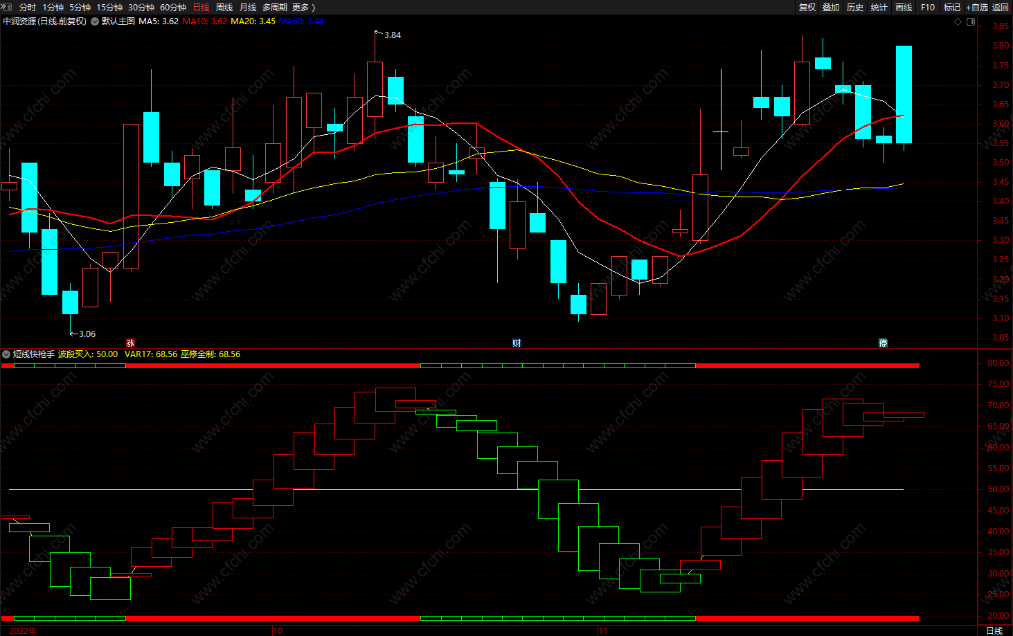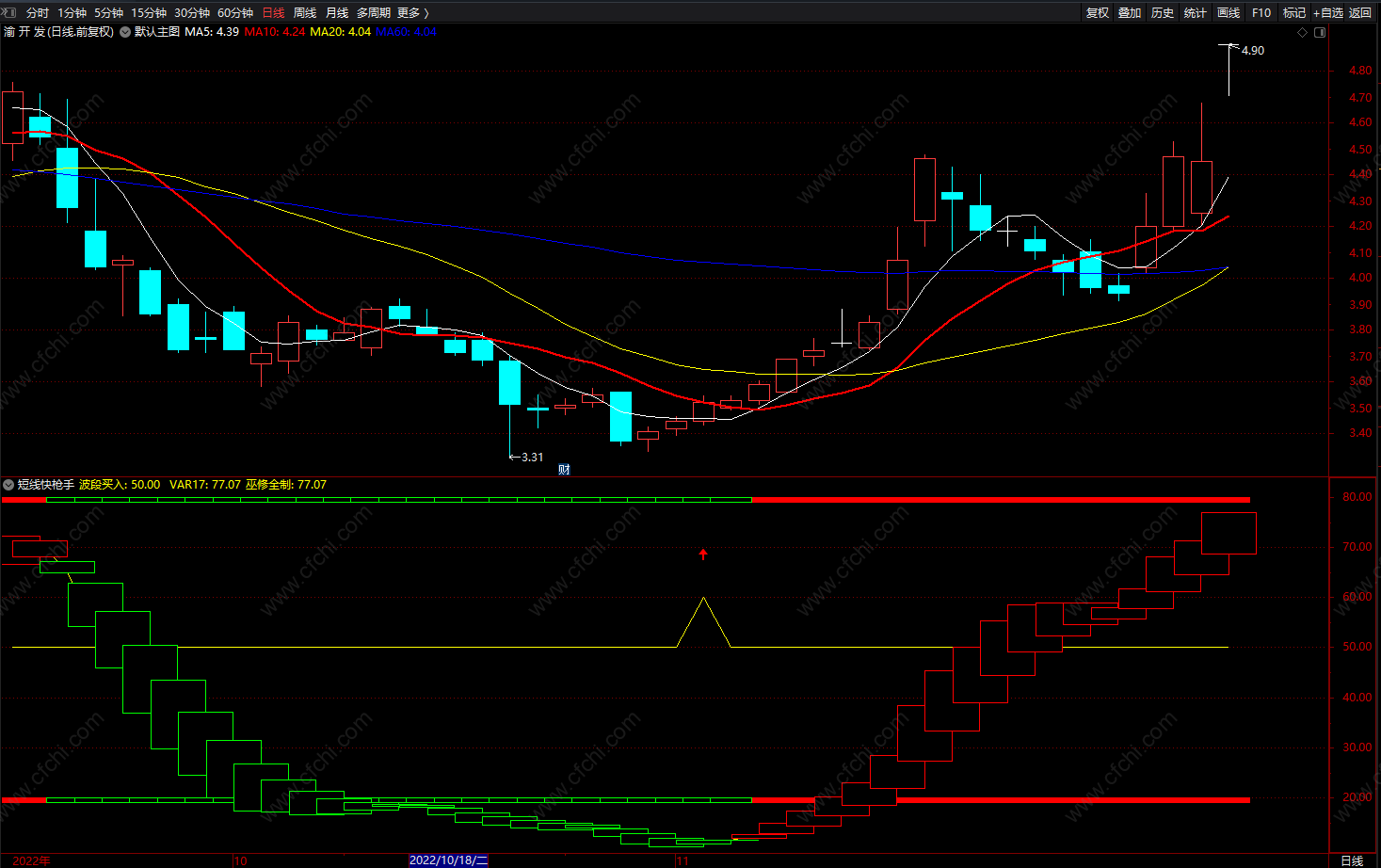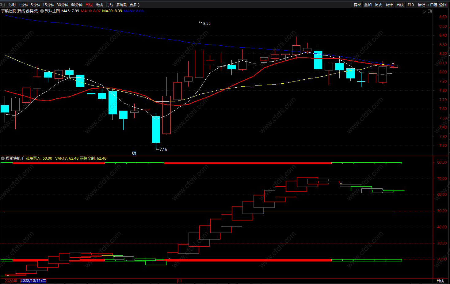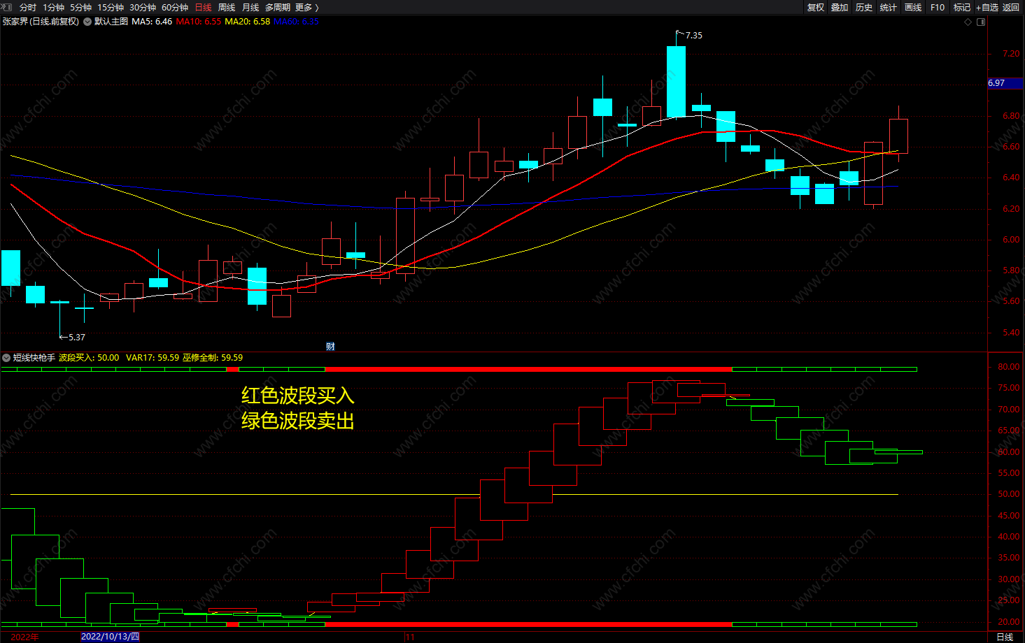 (短线快枪手 通达信红绿波段低点买入卖出指标 副图 源码)