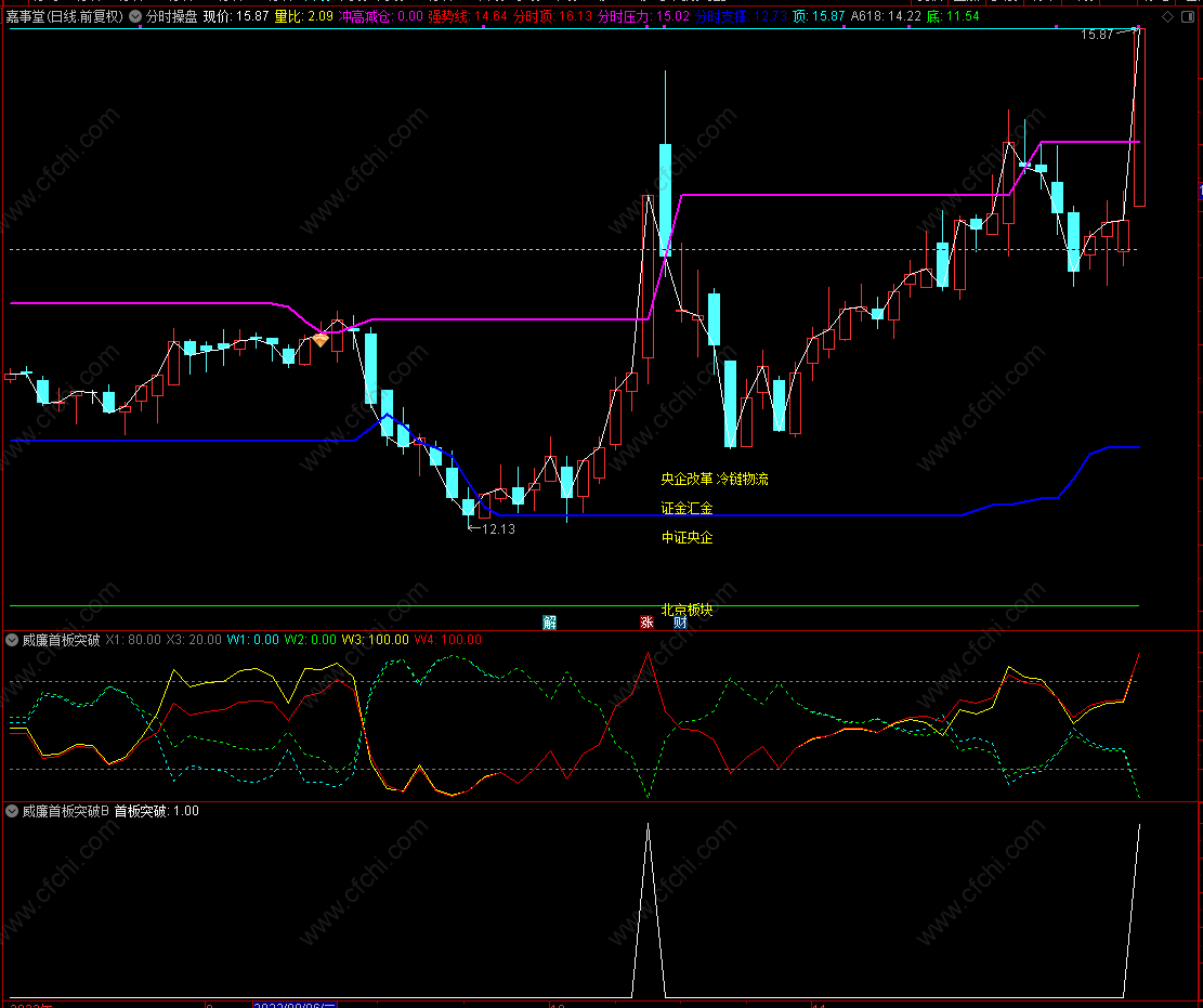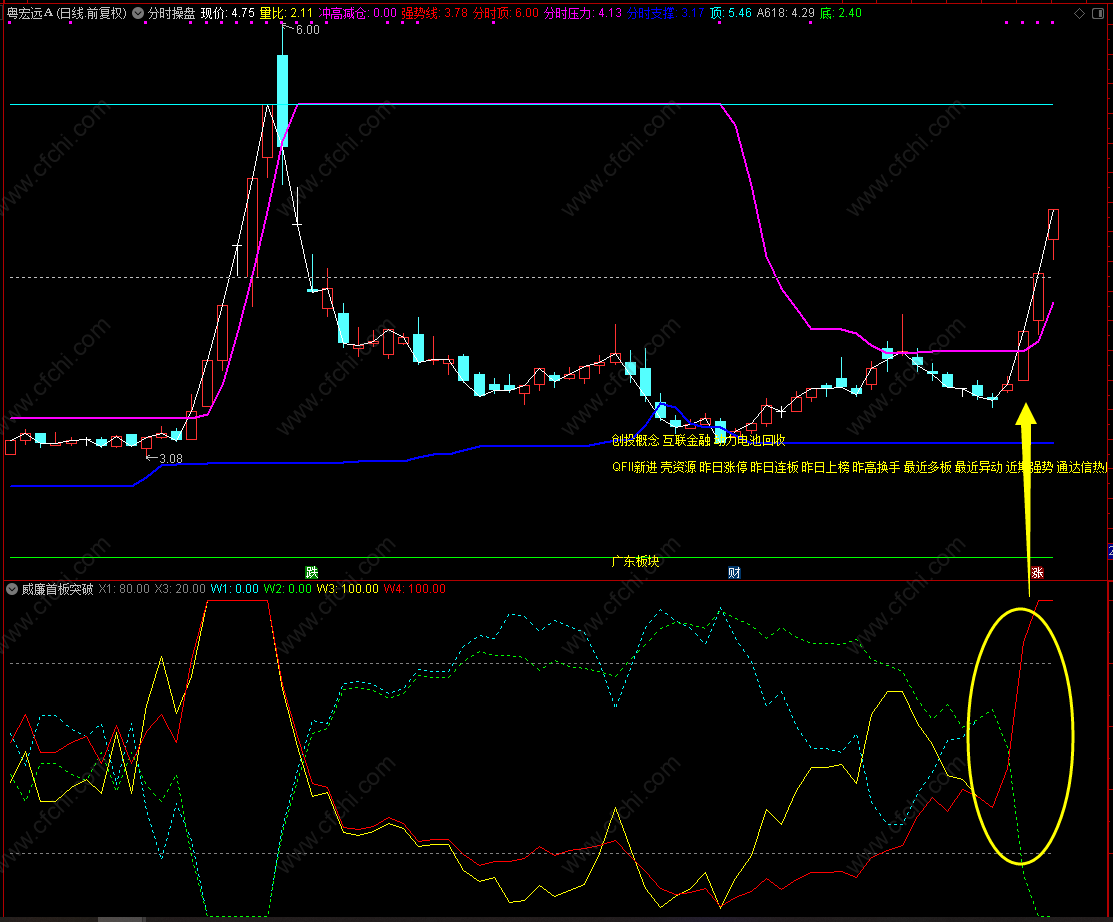 (通达信【威廉首板突破】副图选股指标,4条线相互向上交叉点及上穿发出信号,捕获强势股源码分享)