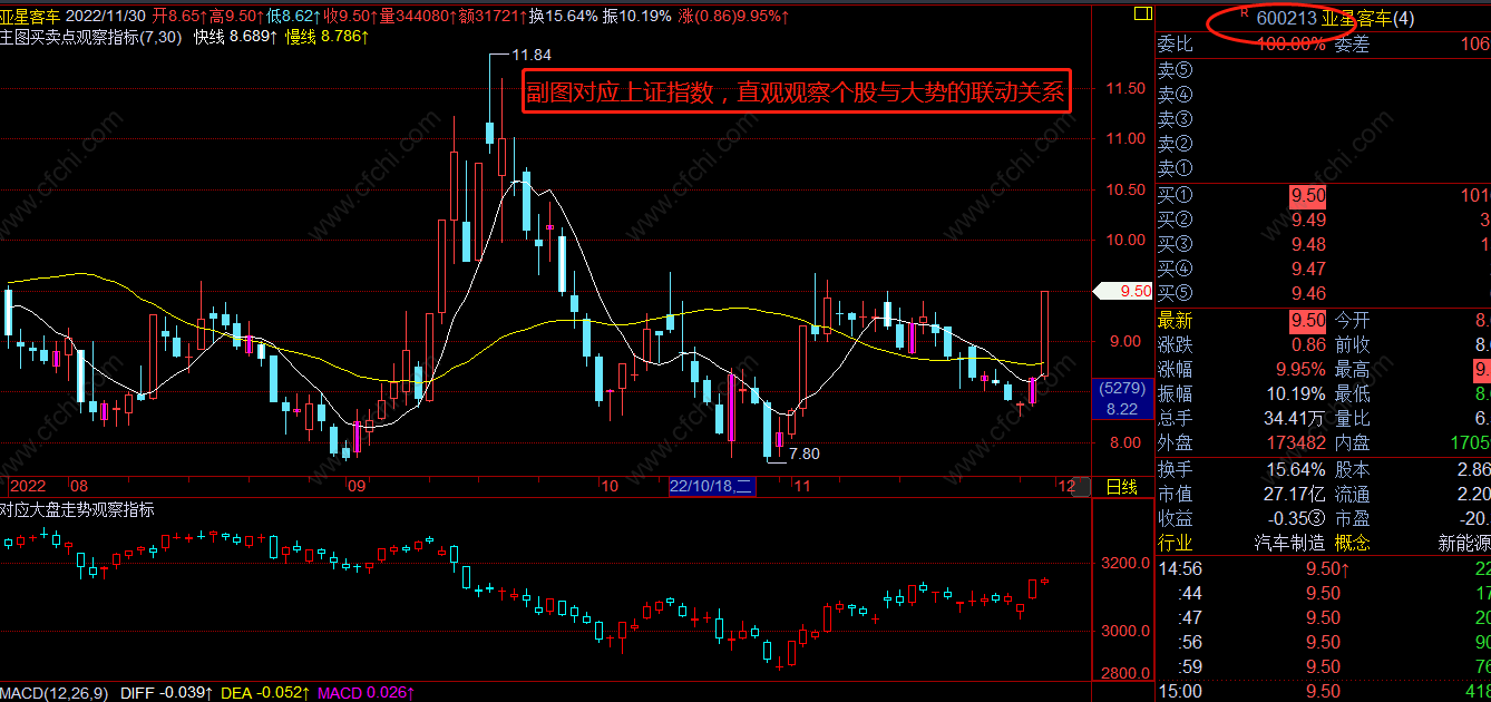 (对应大盘走势观察指标------直观看到个股与相对应大盘指数联动)