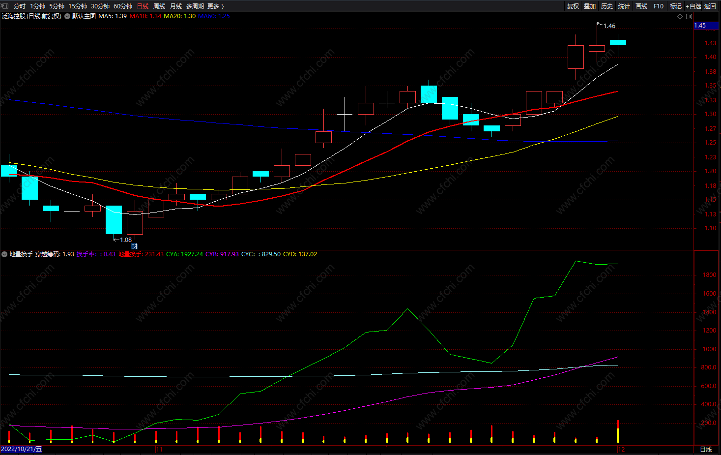 (VOL/CAPITAL*100)<=3 AND C< O,地量换手,0,10,0),COLORFFFF33;