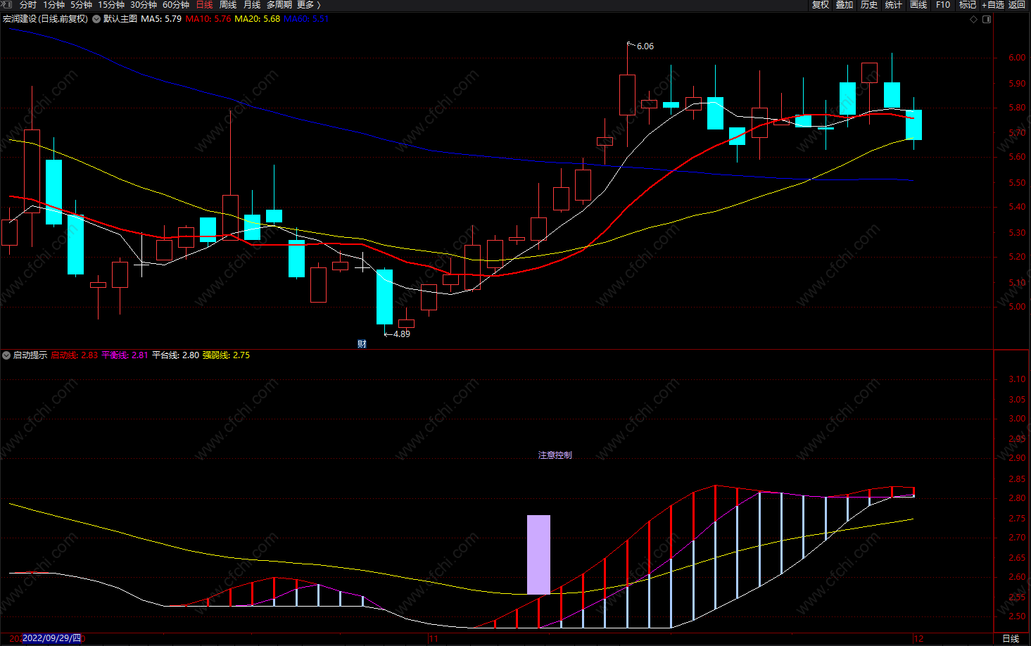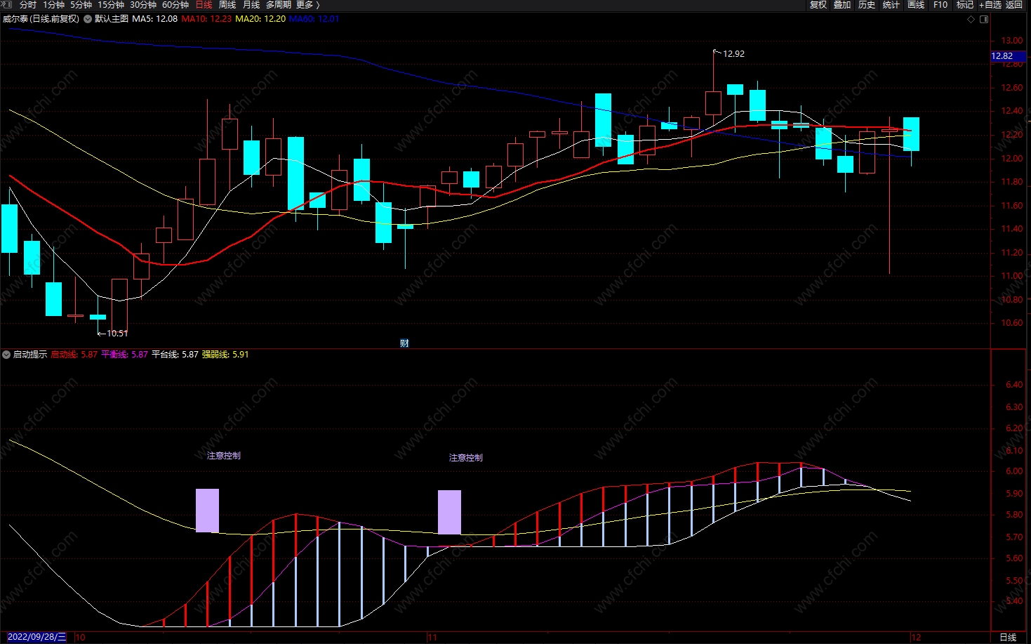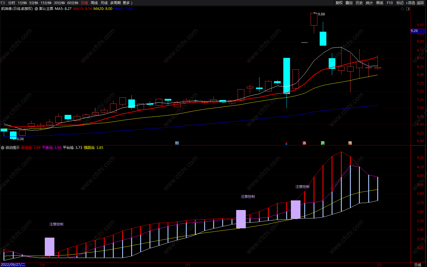 (启动提示 通达信庄家控盘指标公式源码 副图)