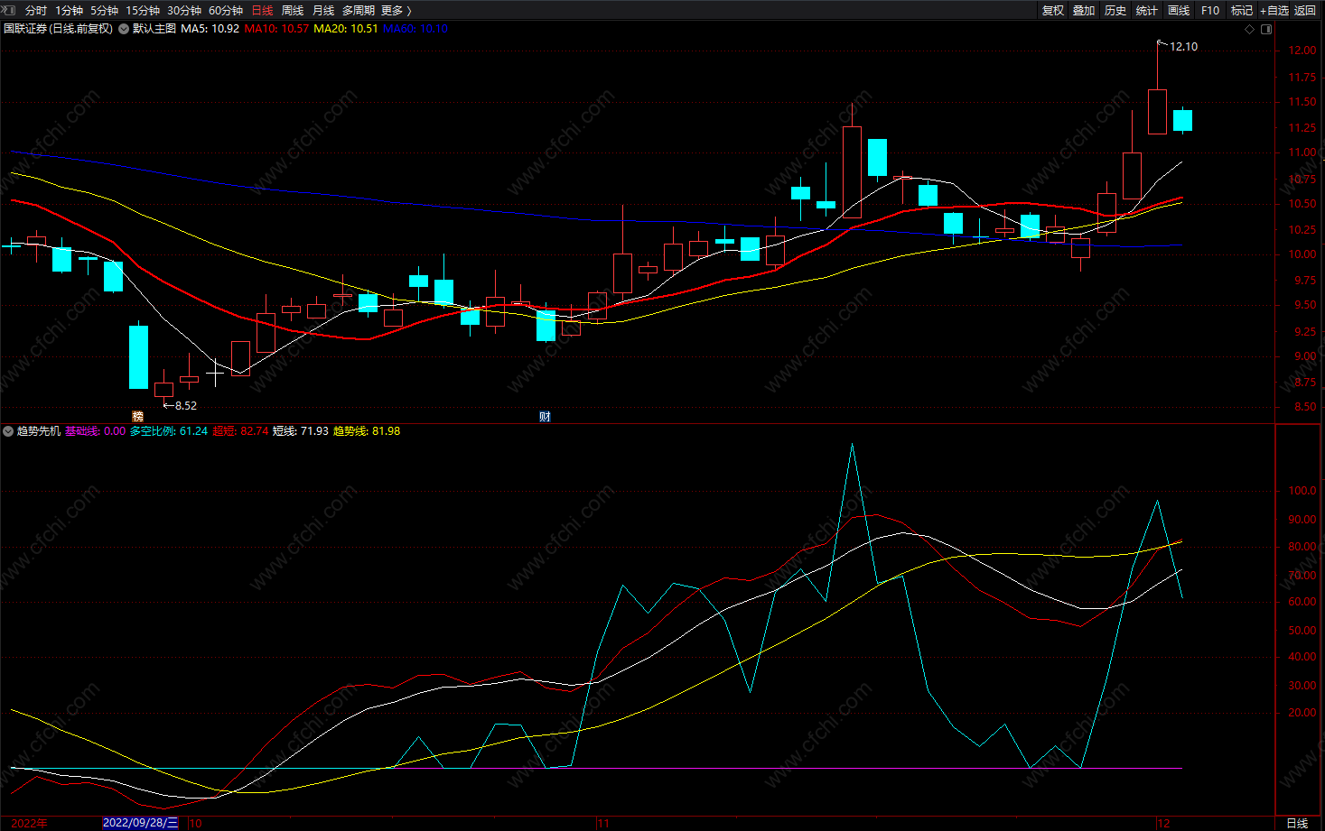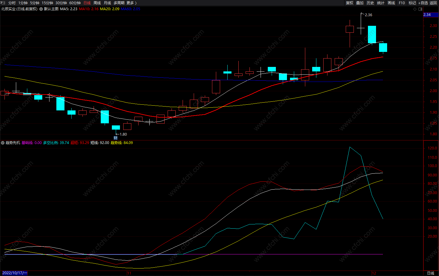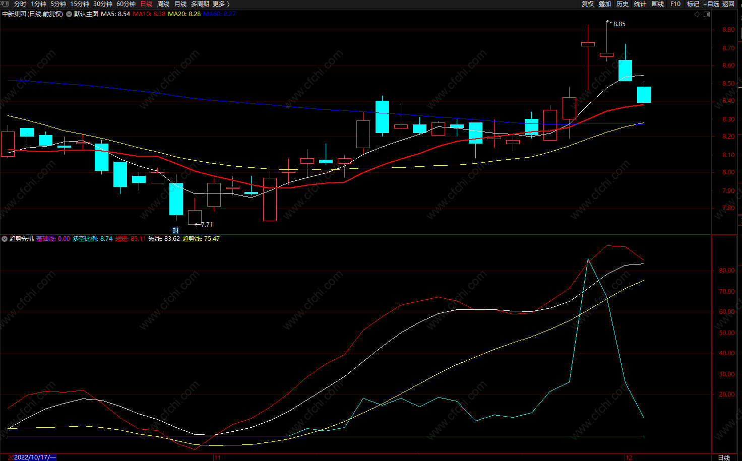 (趋势先机 通达信超短线精准买卖趋势线指标 副图 源码)