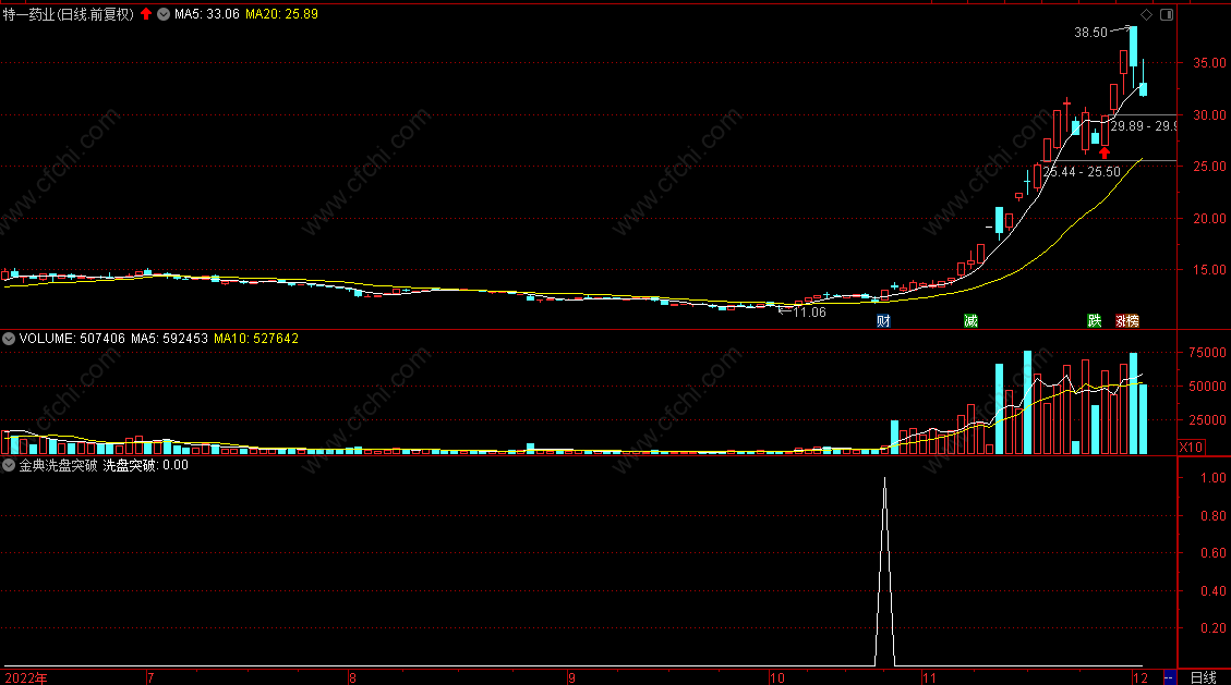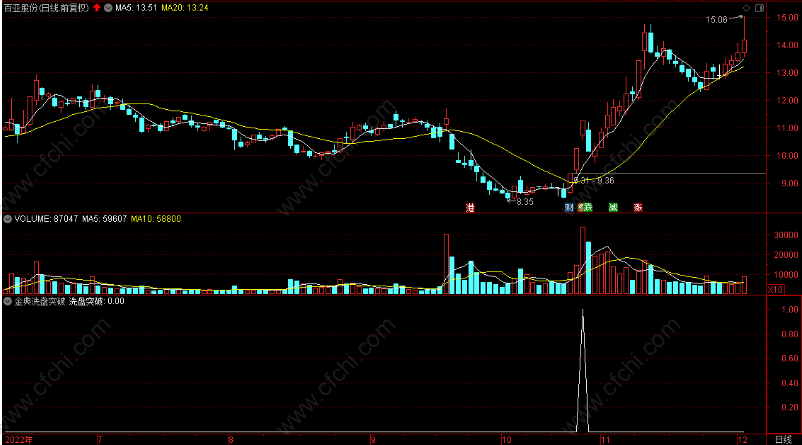 (金典洗盘突破选股副图指标公式,祝股市长虹!!!)