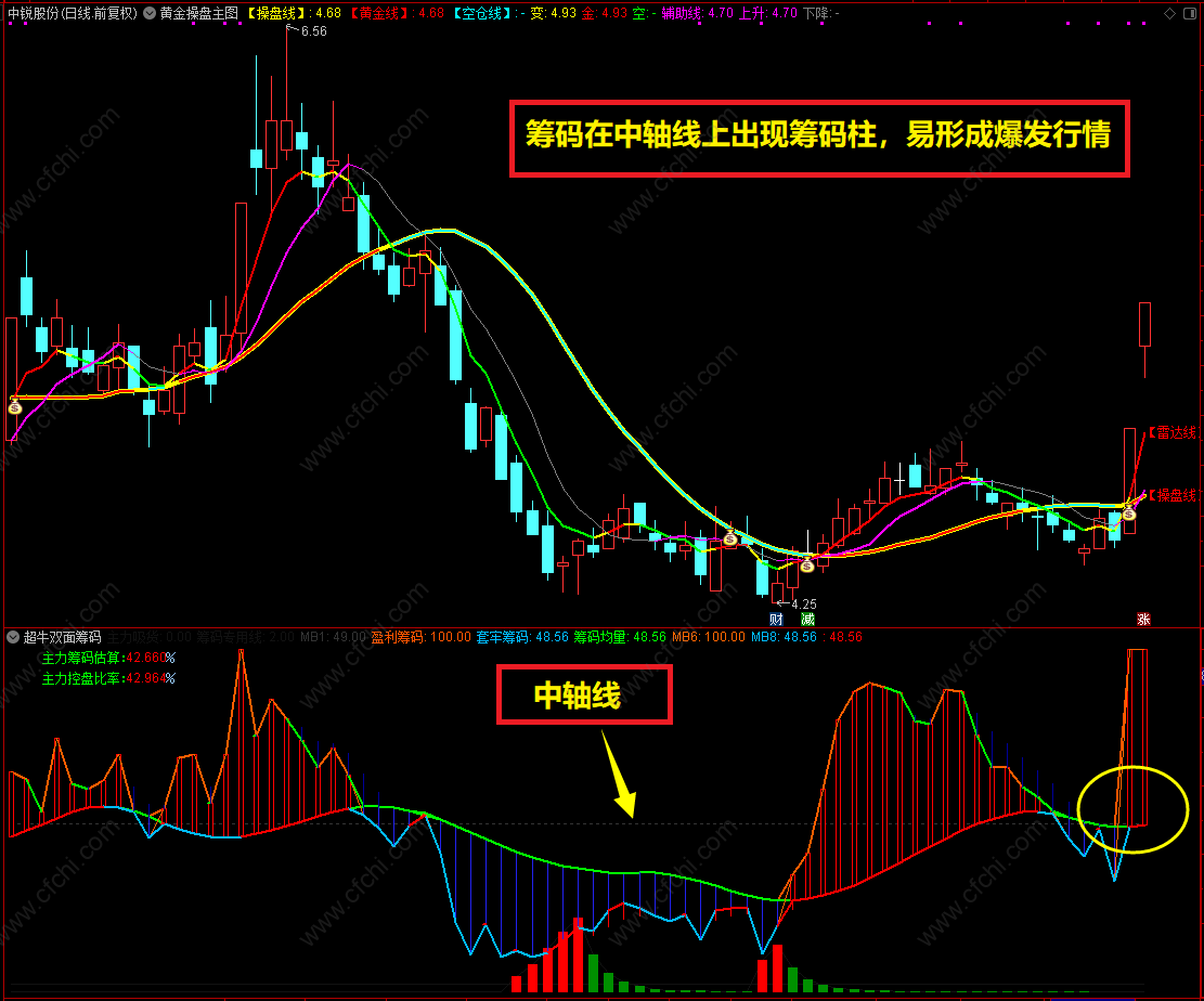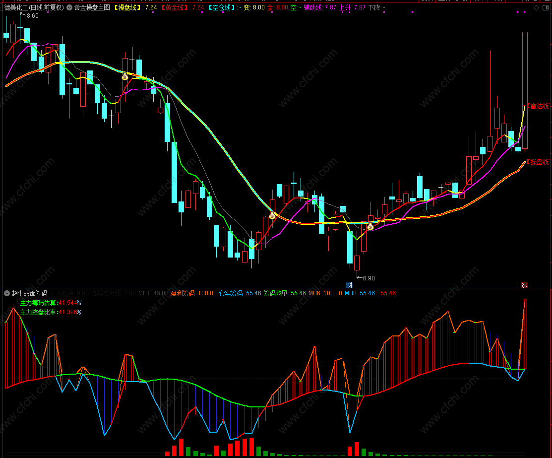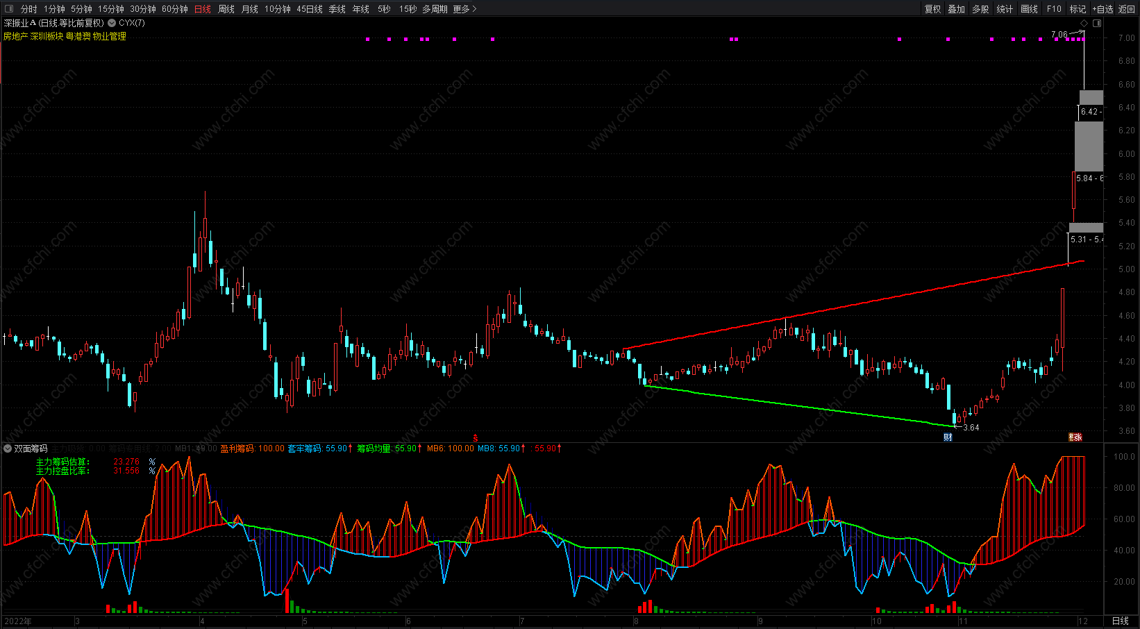 (通达信【超牛双面筹码】副图指标,阶段趋势、坐拥财富,源码分享)