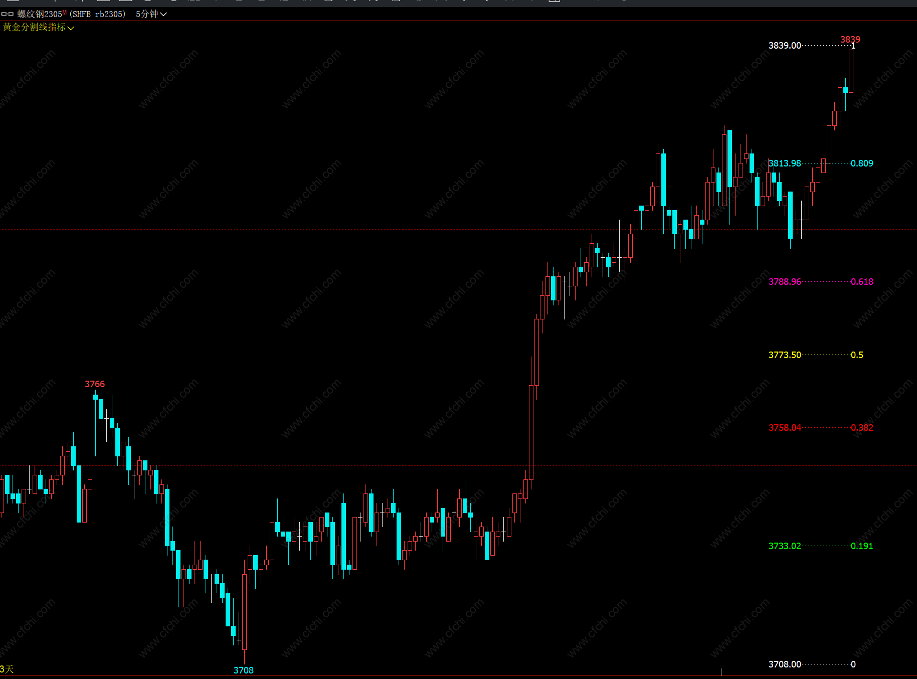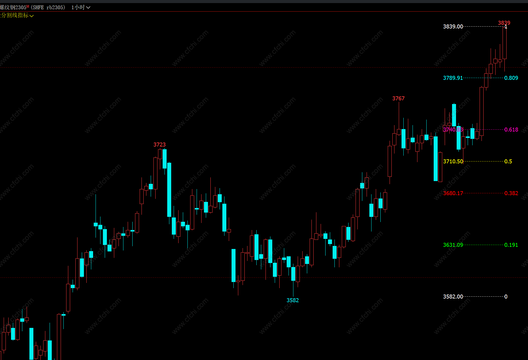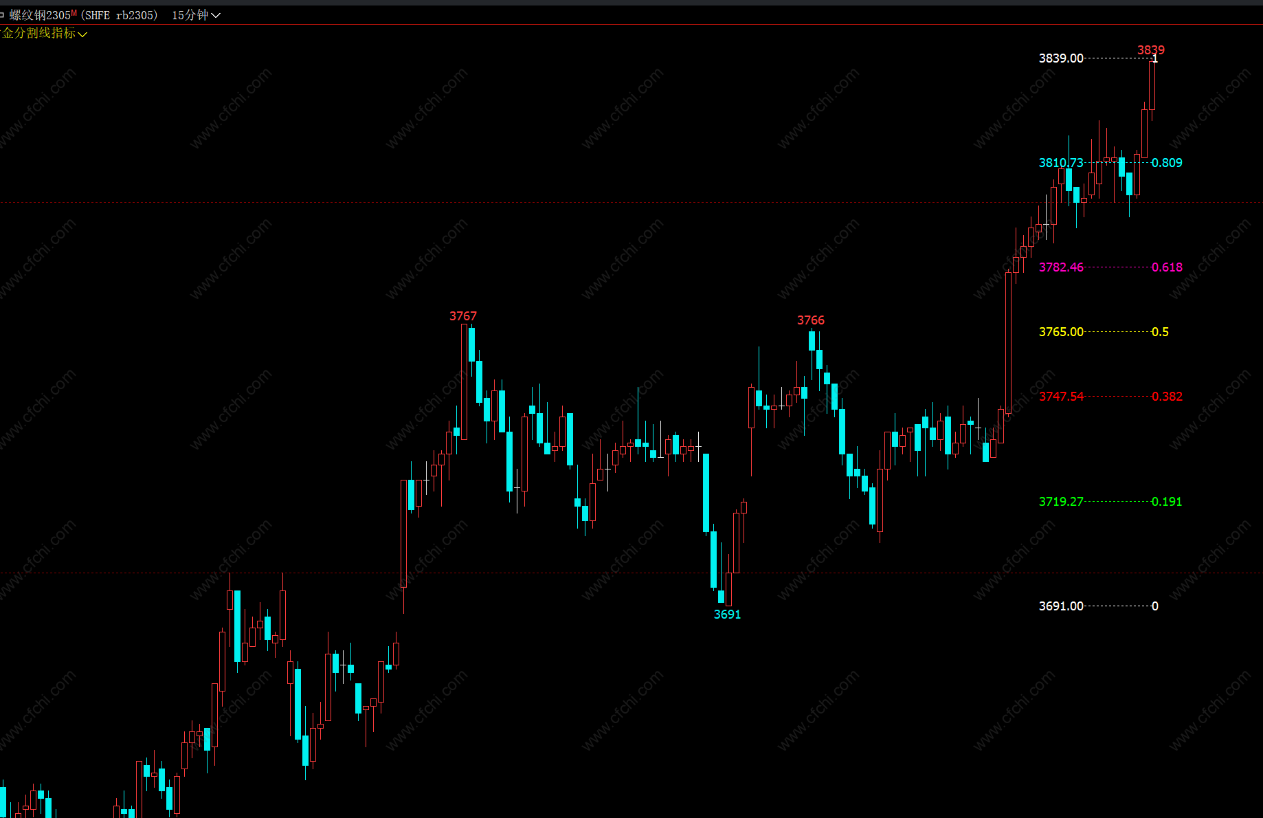 (【期货黄金分割线指标】文华财经软件指标公式大全 黄金分割线分析技术 支撑压力线)
