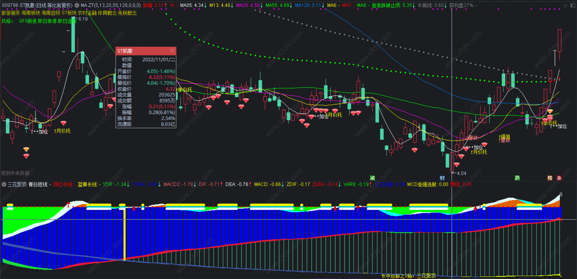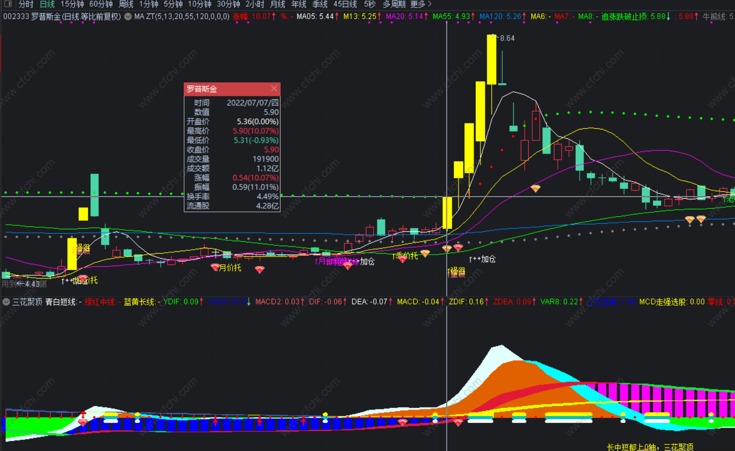 (通达信三花聚顶升级版副图选股指标,借势抓牛股,多一层安全保障!源码分享)