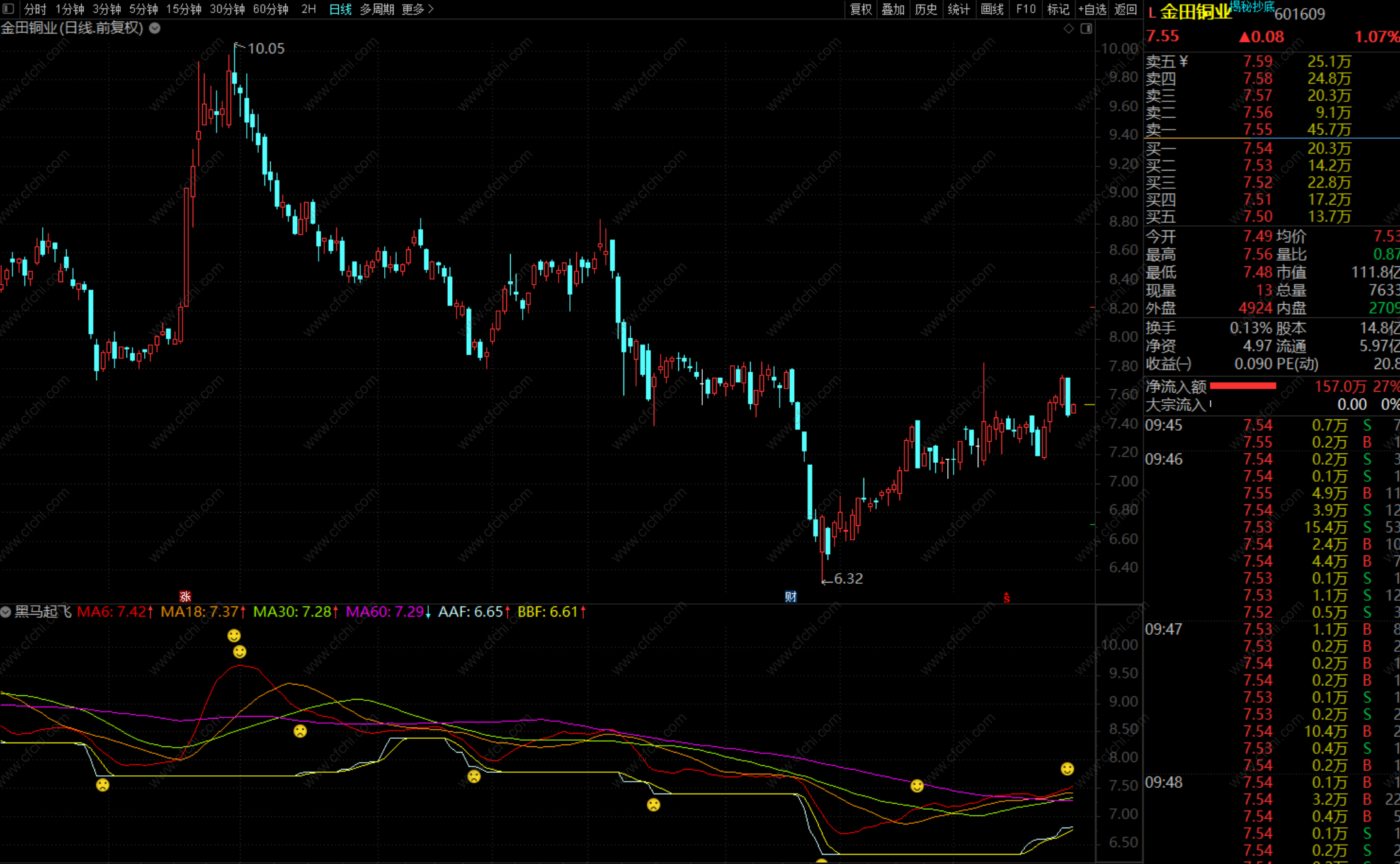 通达信副图指标黑马起飞买入点提示指标 无未来 不加密 贴图
