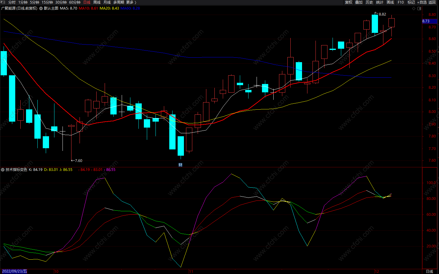 技术指标变色 KDJ分段线 通达信精准趋势线副图指标公式 源码