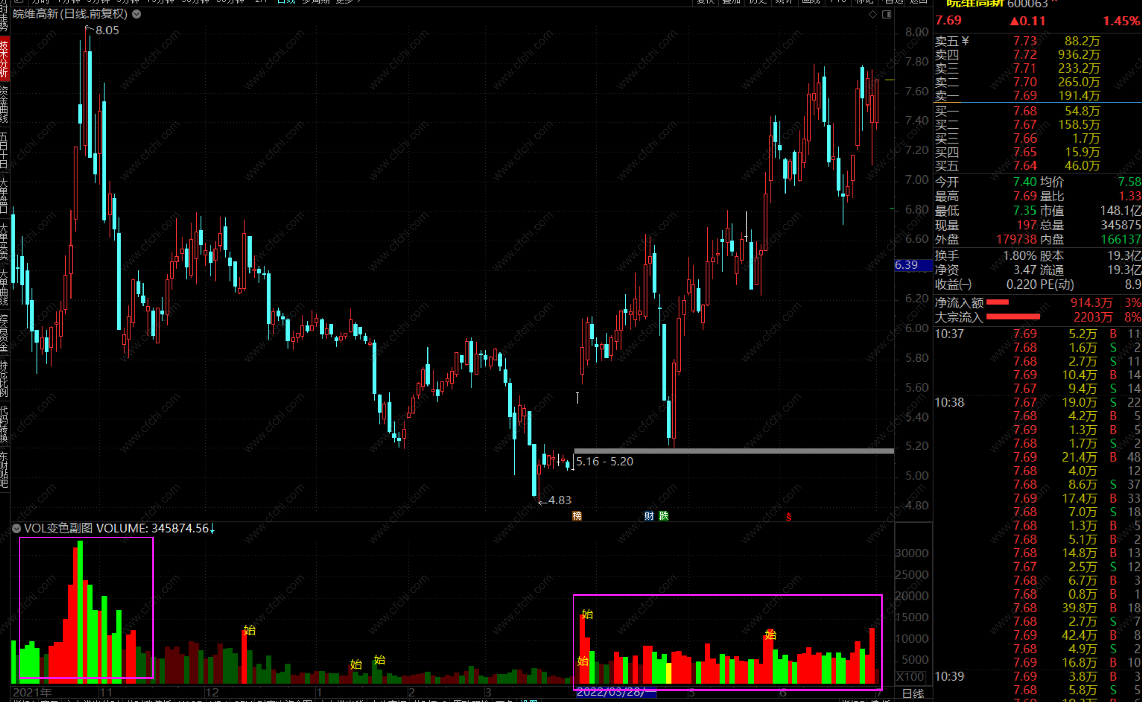 通达信VOL改版变色副图指标 热能显示 做有量的个股