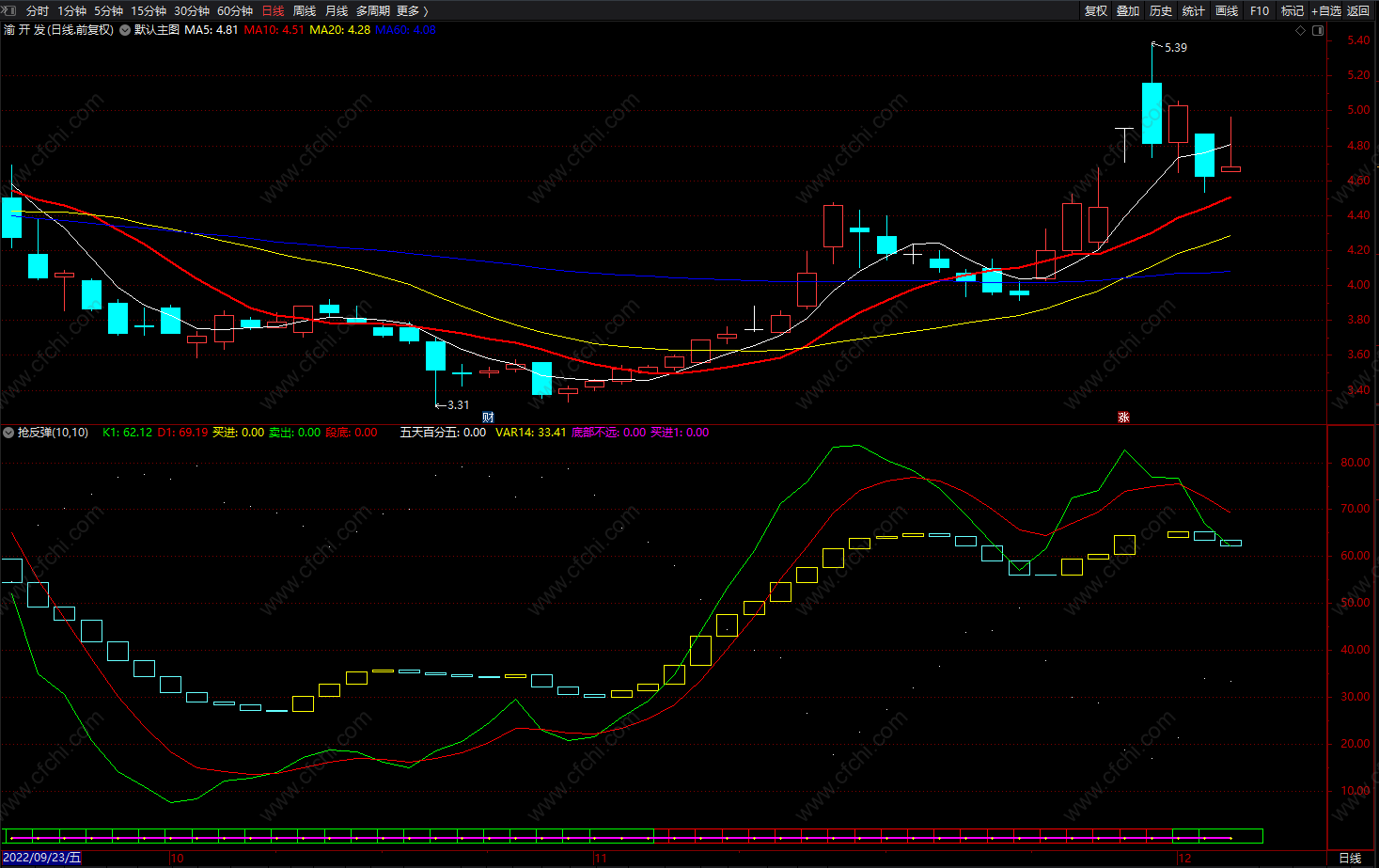 财富池指标公式网(www.cfchi.com)提醒您:指标公式是通过数学逻辑角度编写而来,仅是股票分析环节中的一个辅助工具,对股票选股效率和分析便捷上起到一定的作用,股市是具有不确定性和不可预测性的,请正常对待和使用指标公式!