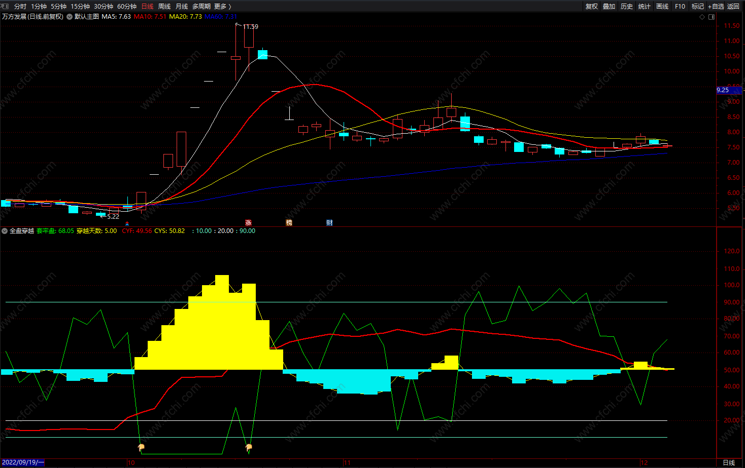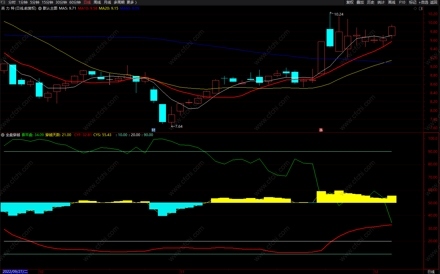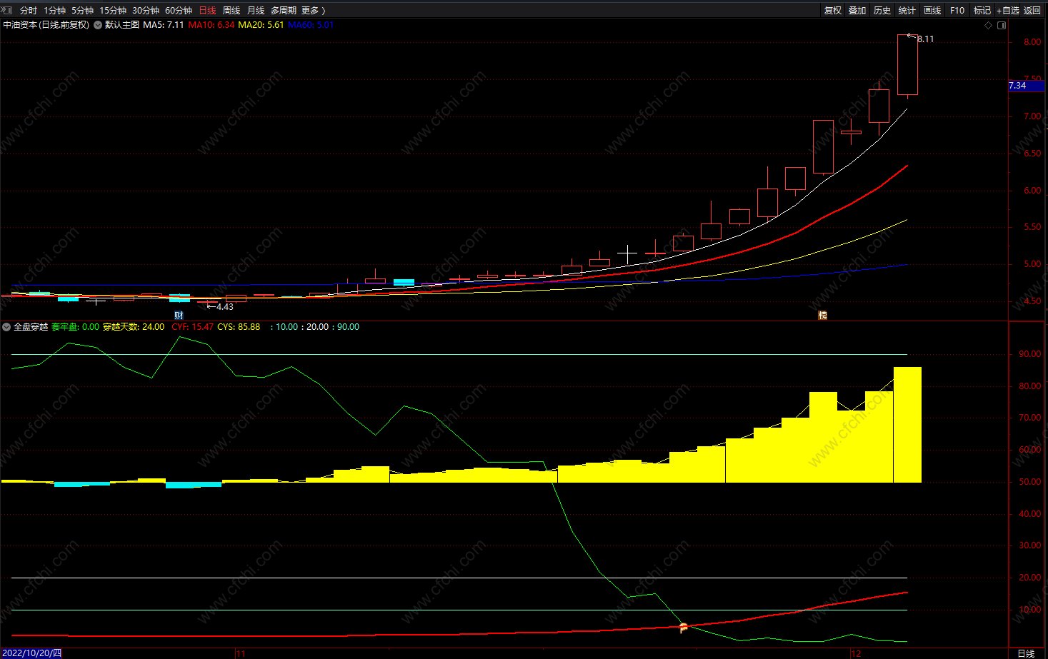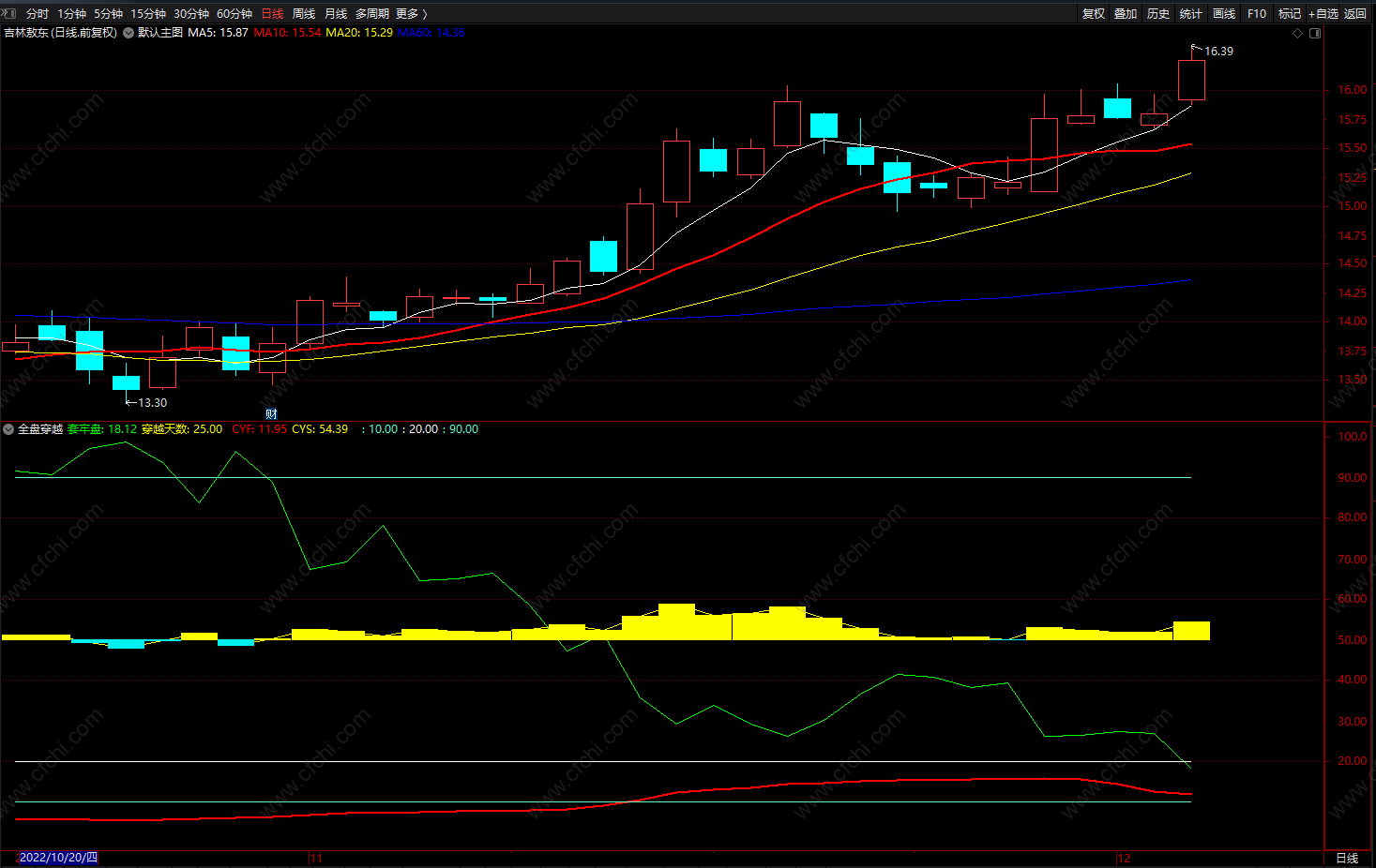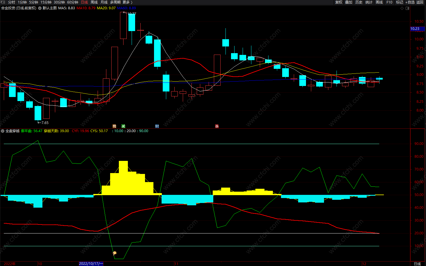 全盘穿越套牢盘 通达信中线成本均线 副图 源码