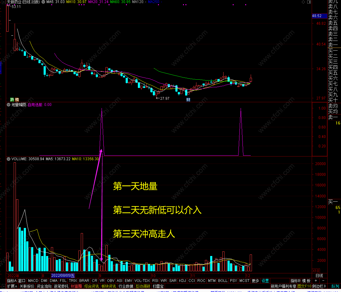 (3)、个股调整位置地量,等待企稳反转低吸,例如:重新站上五日线放量等信号