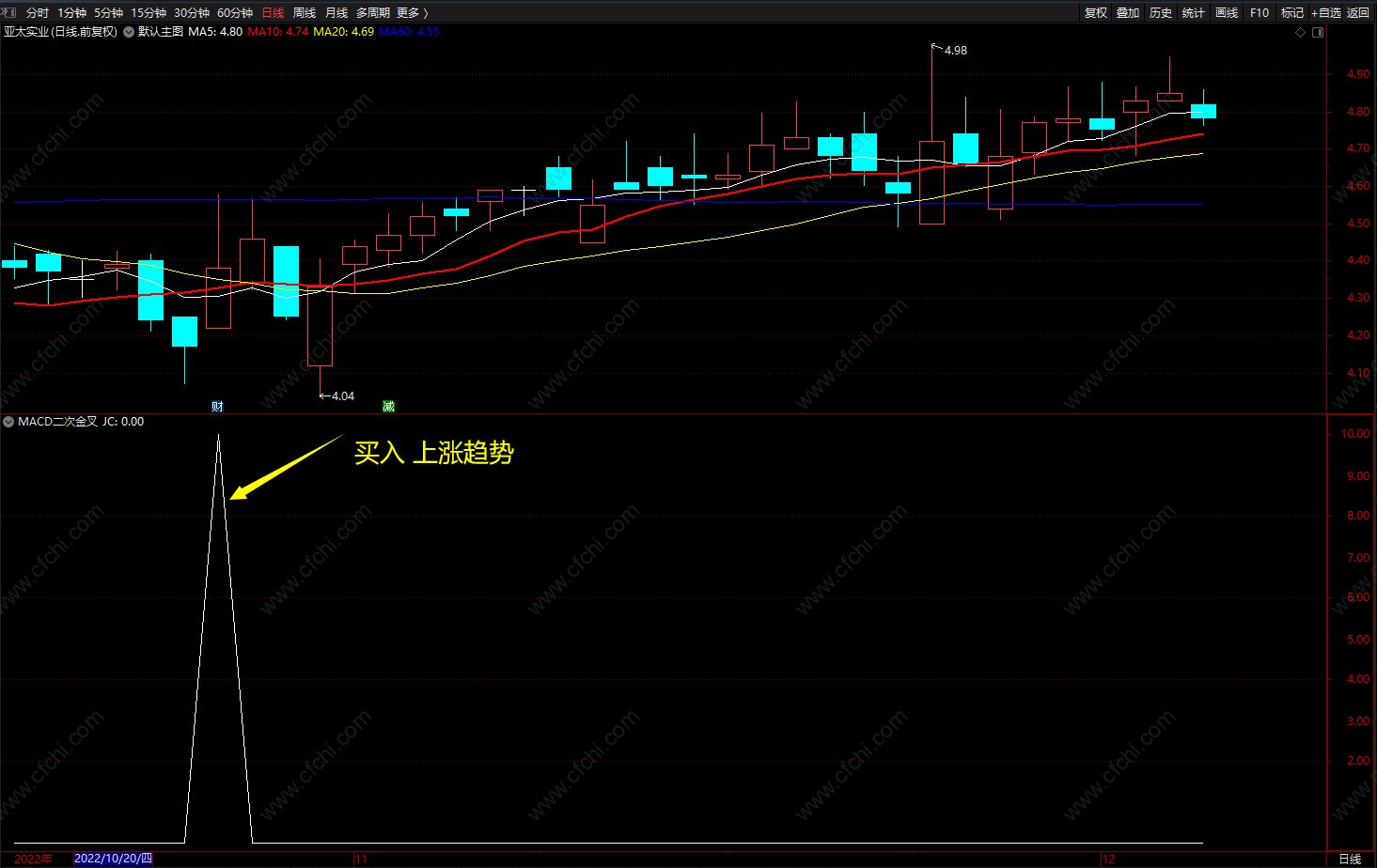 (MACD二次金叉 通达信精准短线买入指标公式 副图 源码)