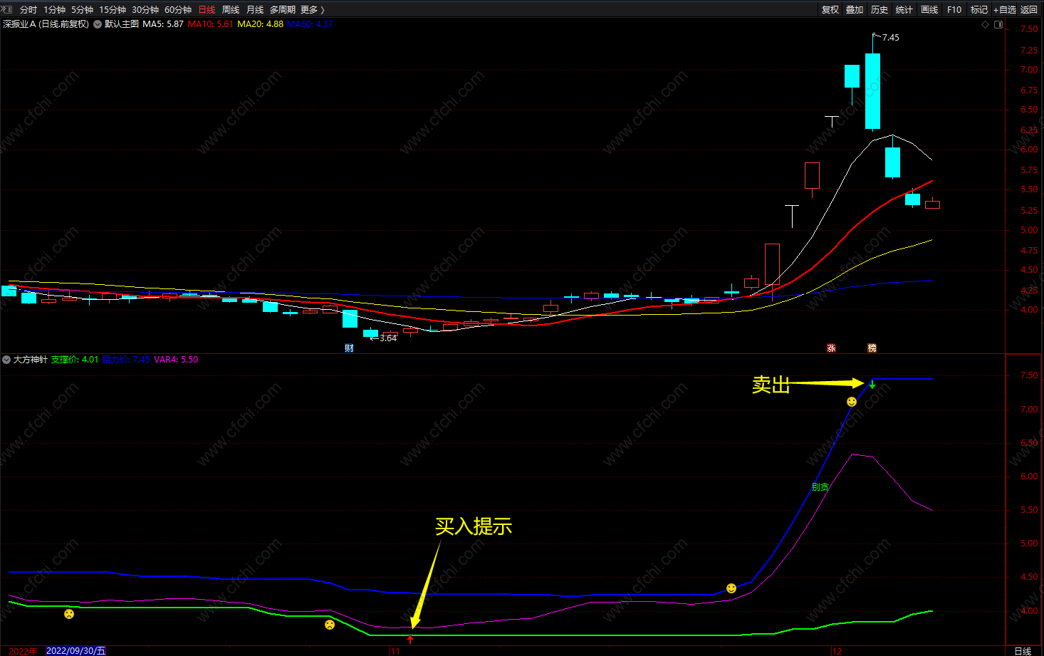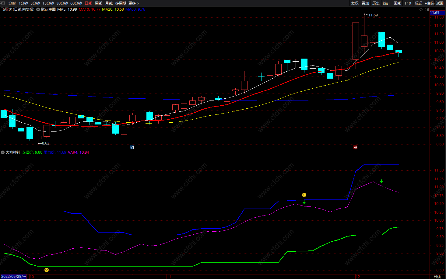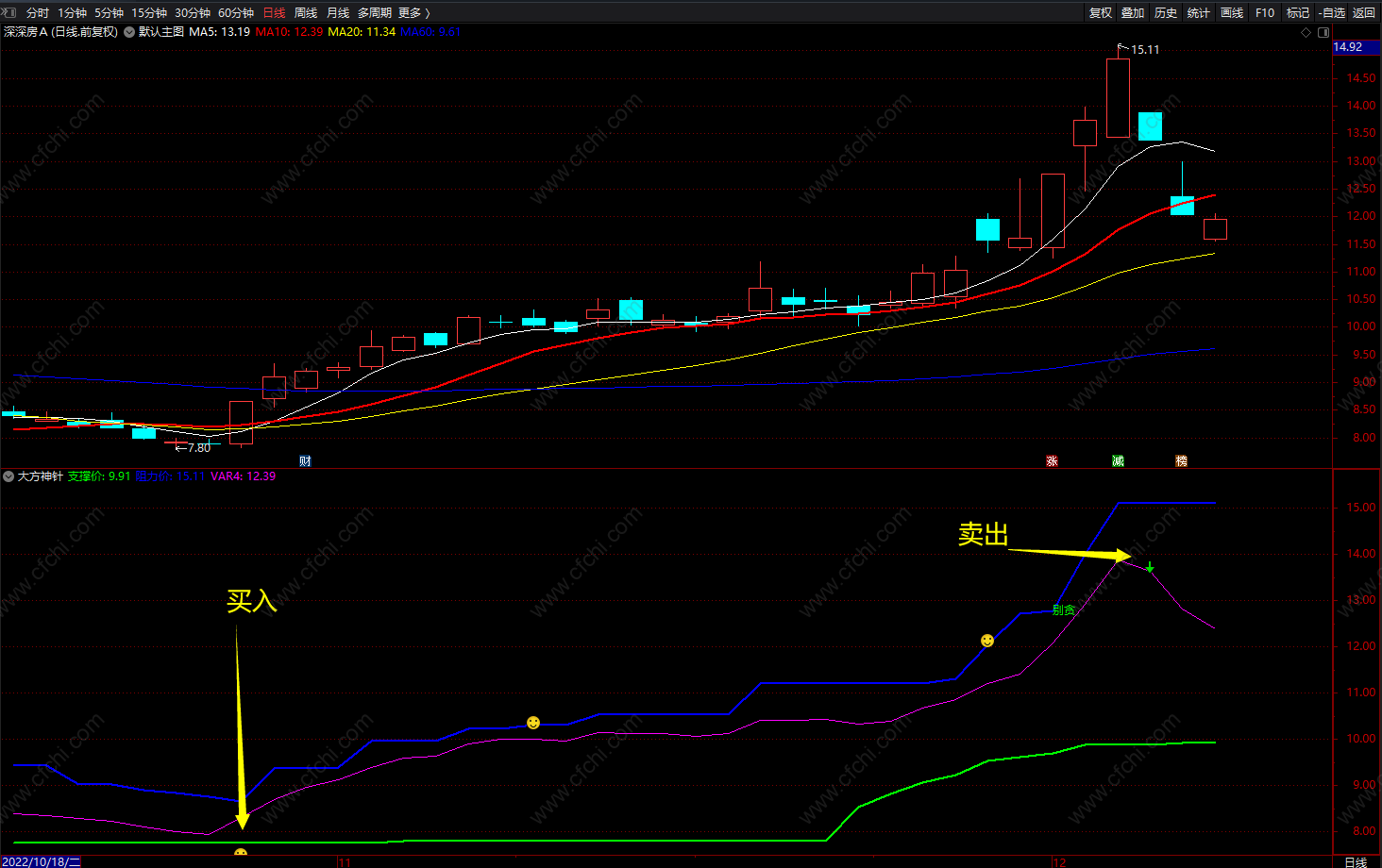 (大方神针 通达信短线压力支撑位抄底指标公式 副图 源码)
