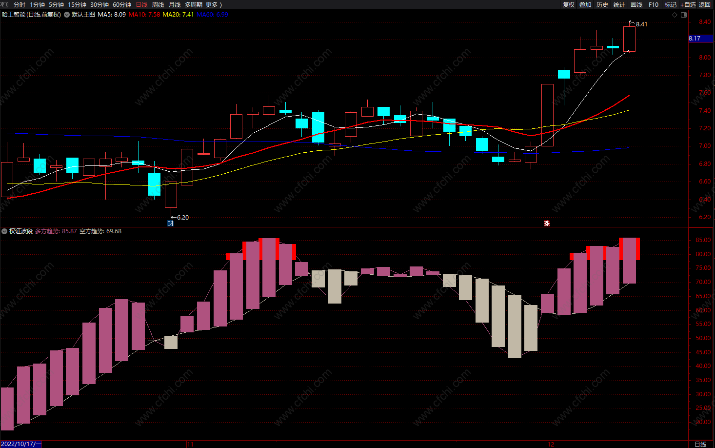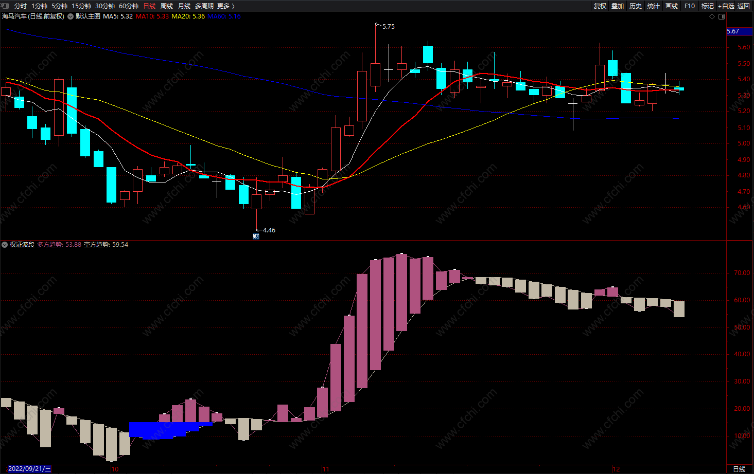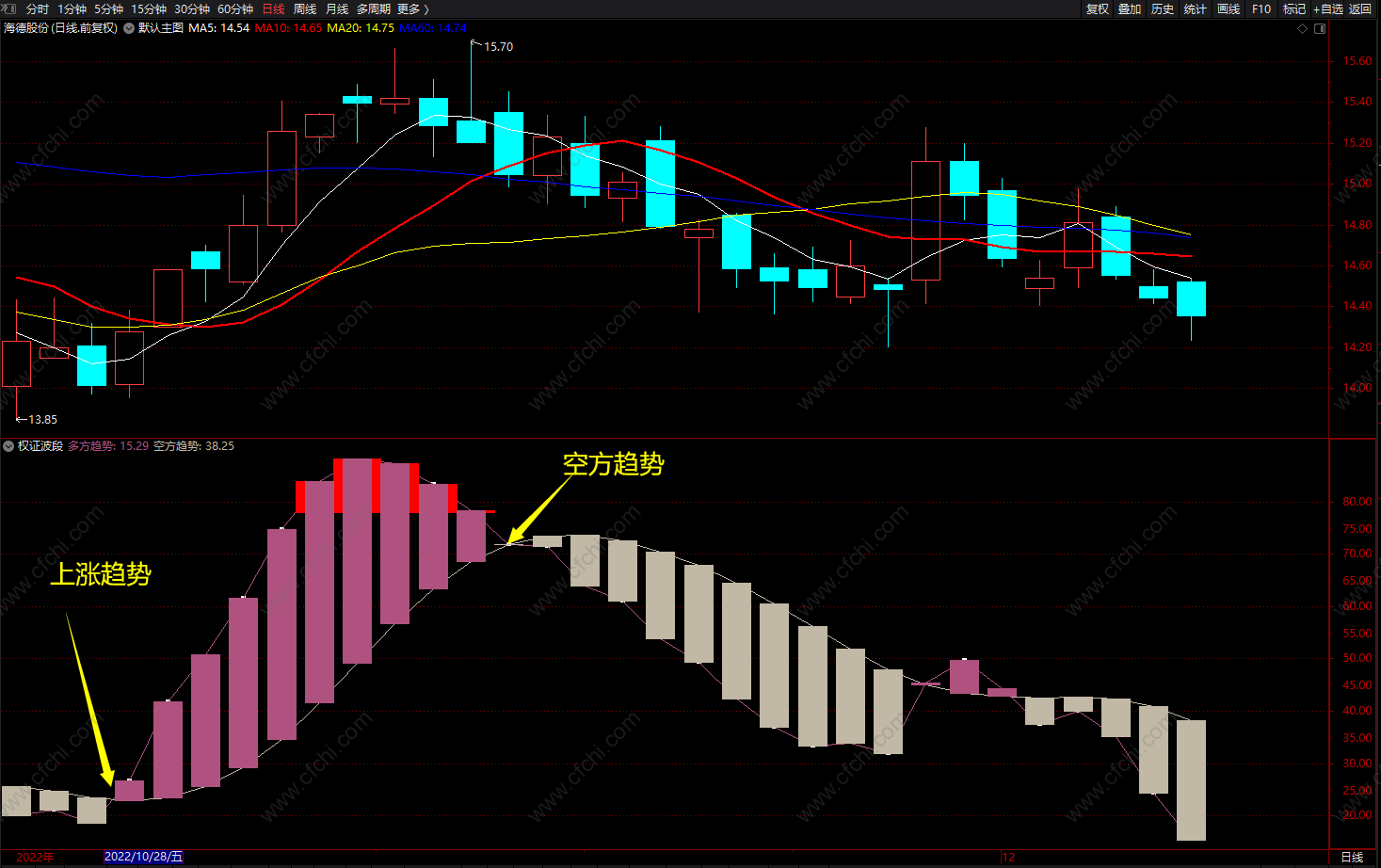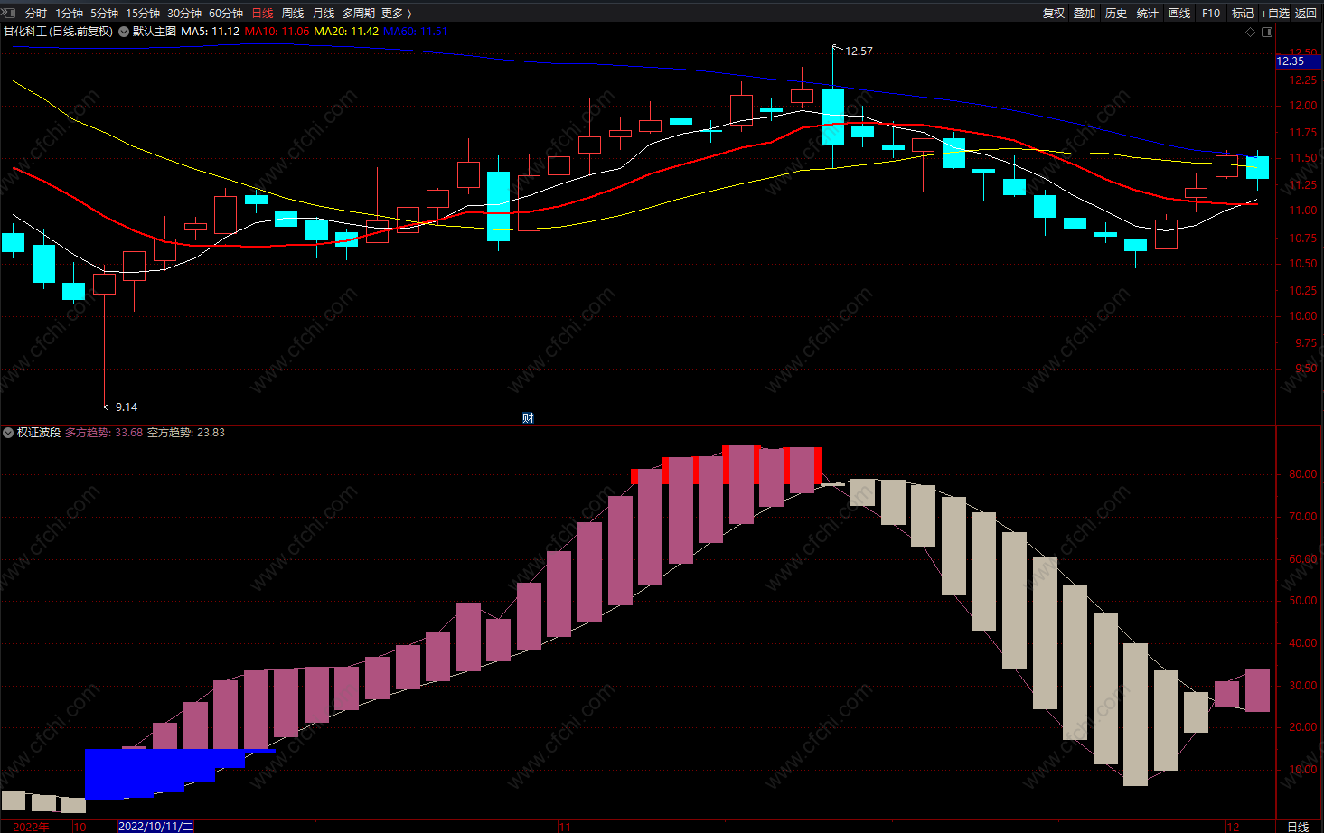 (权证波段 通达信多空趋势波段顶底指标 源码 副图)