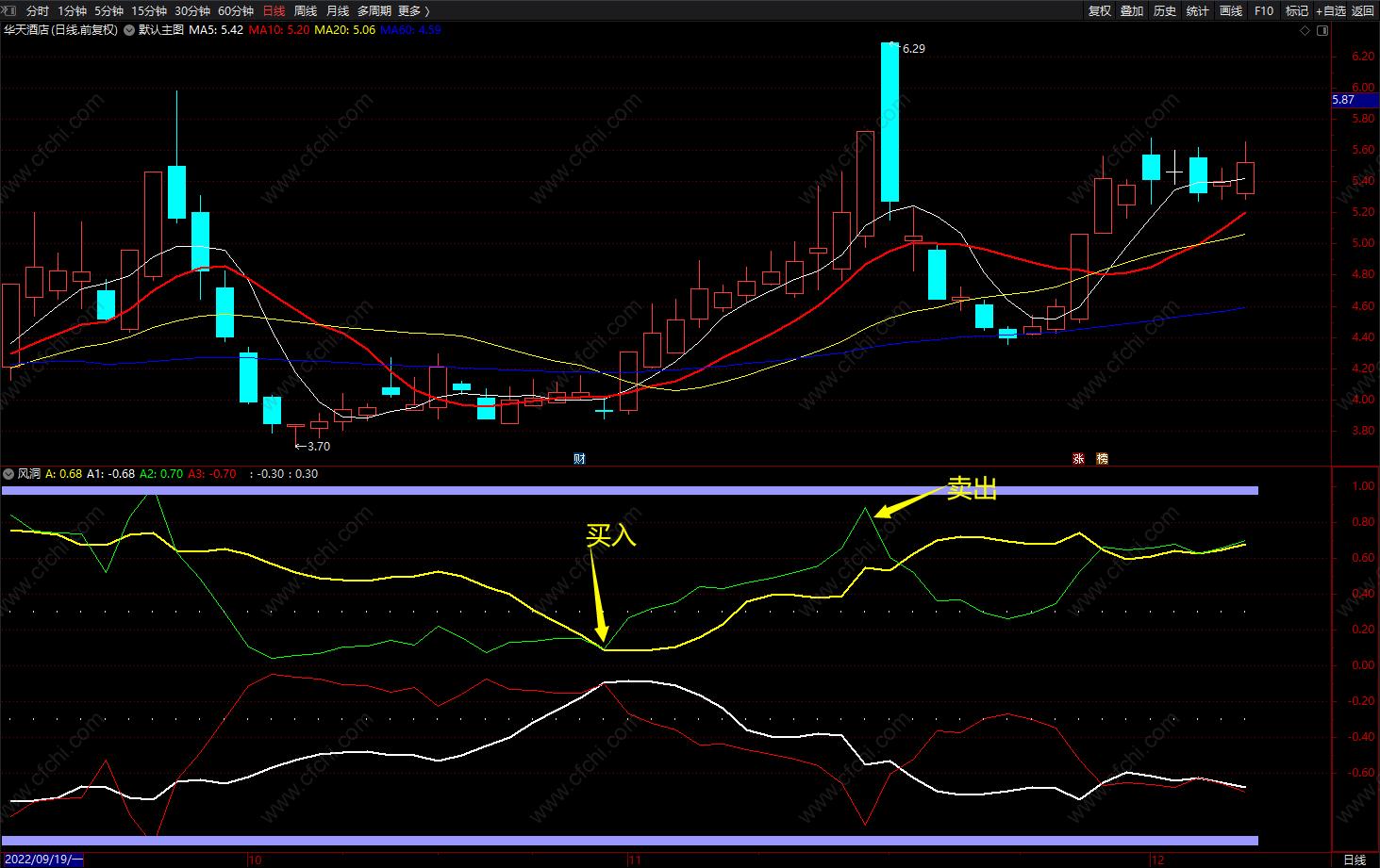 财富池指标公式网(www.cfchi.com)提醒您:指标公式是通过数学逻辑角度编写而来,仅是股票分析环节中的一个辅助工具,对股票选股效率和分析便捷上起到一定的作用,股市是具有不确定性和不可预测性的,请正常对待和使用指标公式!