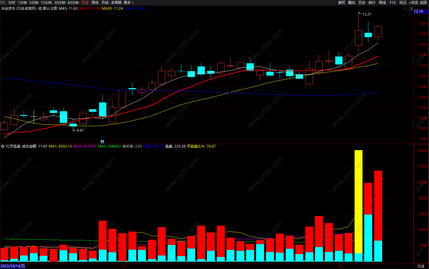 柱状图红蓝的长度对比反应买卖双方力度,带黄色柱预示后势上涨概率较大,蓝黄柱则下跌风险较大。