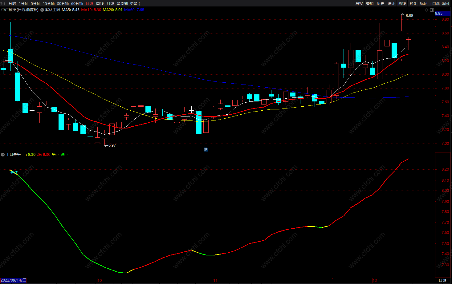 十日走平副图 通达信 股票涨跌指标公式图解 无未来 源码