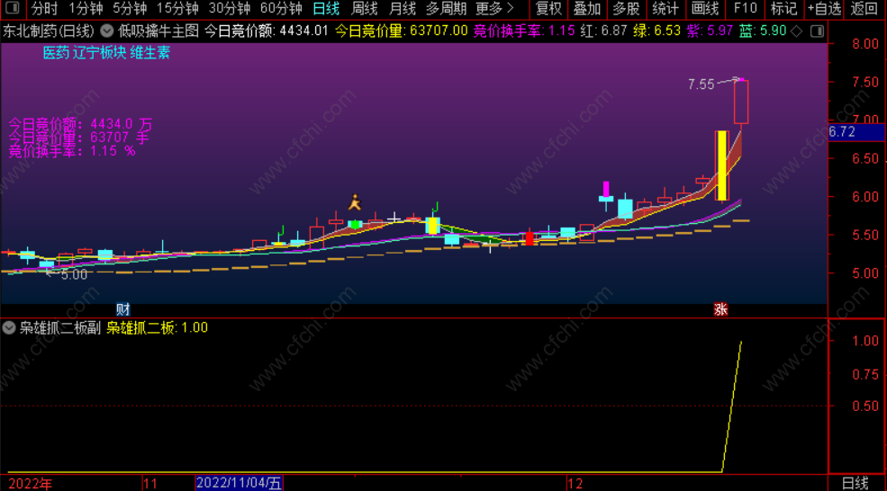 枭雄竞价抓二板通达信副图选股指标 竞价抓二板 昨天抓到3只涨停 今天出了3只 3只全部涨停
