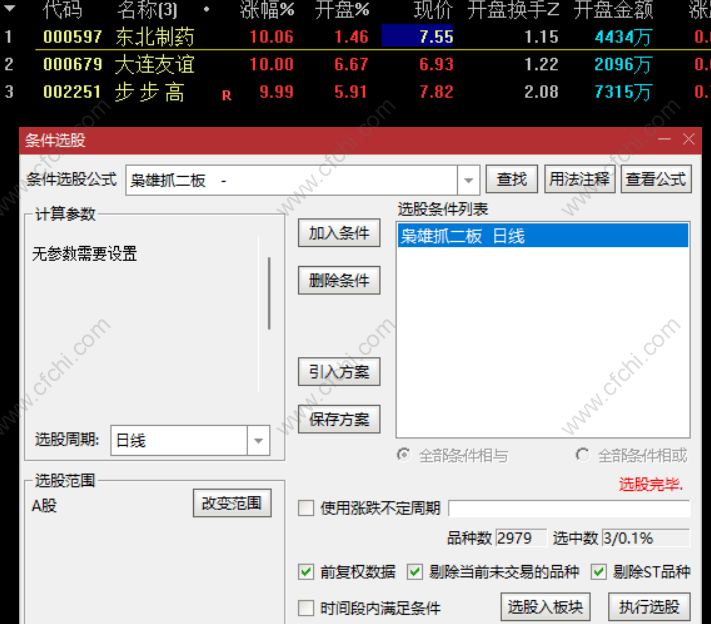 大家可以这样做一个版面,然后设置好一键选股版面,每天9:25分过后一键选股就都出来了,选出来后整天票都不会变动的。这些都是我早上选出来的,没有改动过,早上也发过图,大家可以对比看看。大家自己测试吧。
